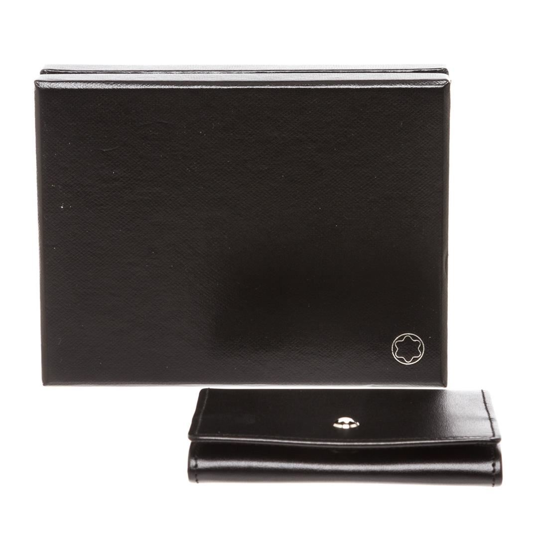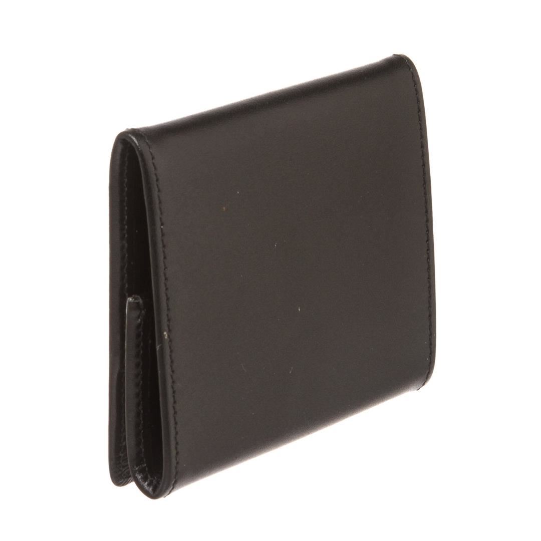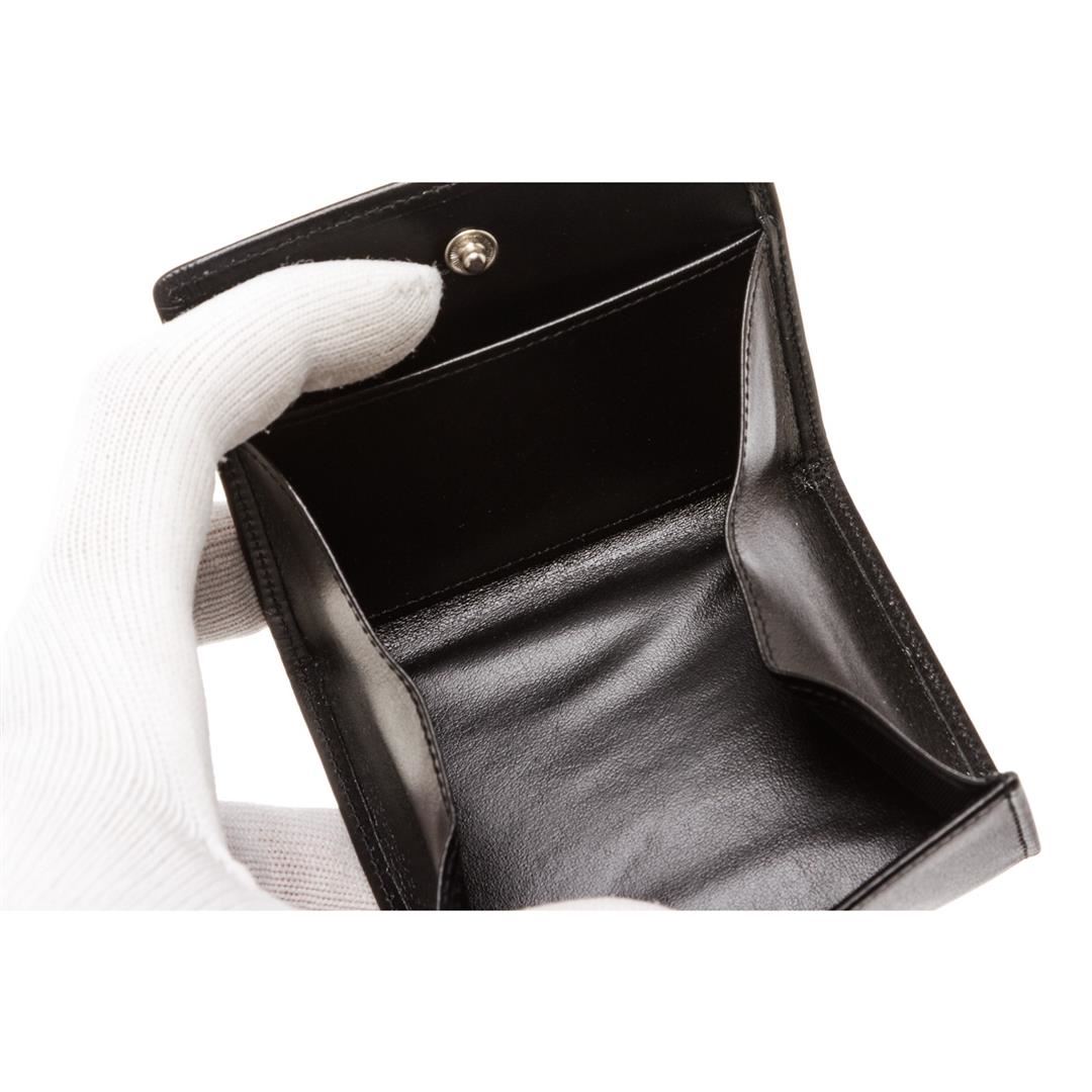 Crafted out of black leather. Inner black leather lining. Dimensions = Length: 4"/10cm Width: 4"/10cm . Item is pre-owned.