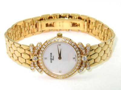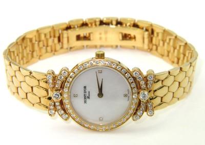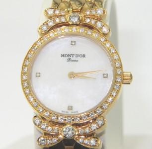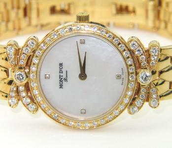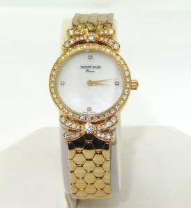 Mont D'or 18K Yellow Gold Diamond Watch.The watch's weight is 53.9 grams.Total weight of diamond: 1.54 cts, approximately, H color, VS clarity.The length of watch: 7" long, 10 mm wide.Water Resistant.Swiss Made