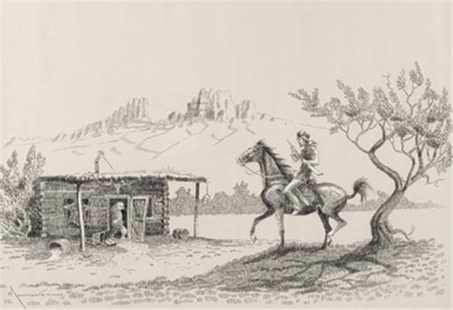 Montague Flagg (1842-1915). Untitled. 16 1/4" x 22 3/4" pen and ink drawing. Signed lower left. (est $500-750)