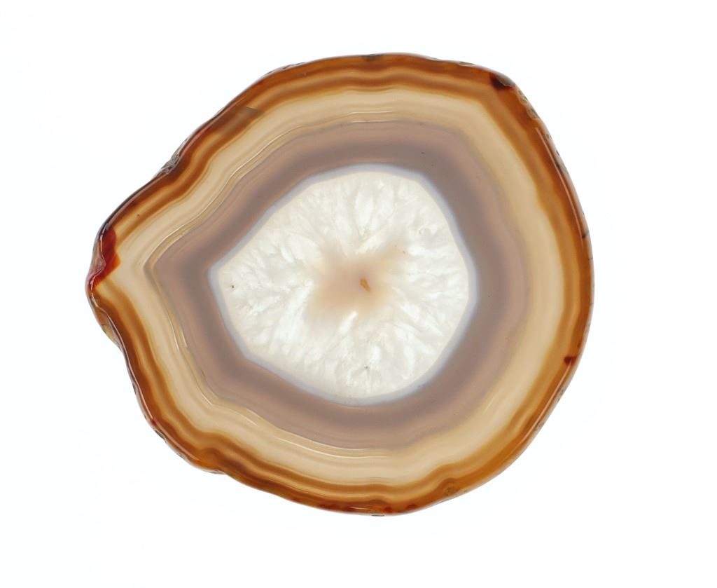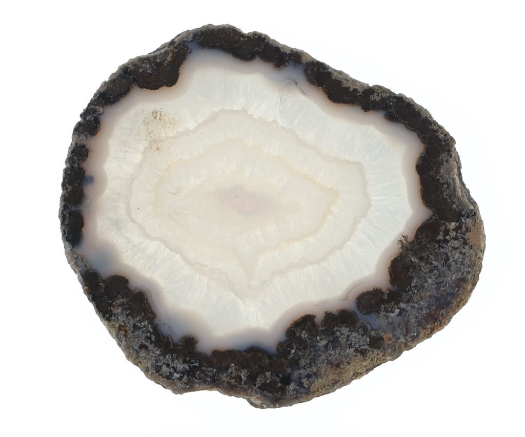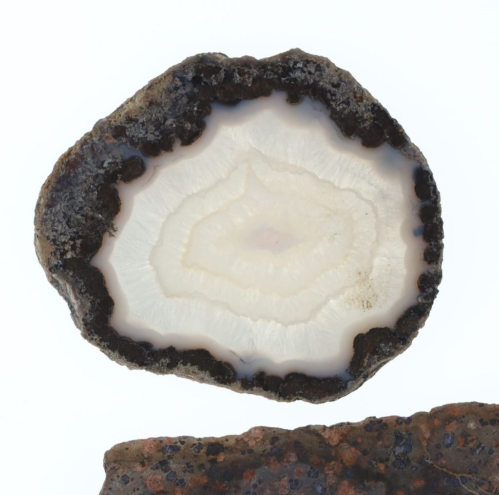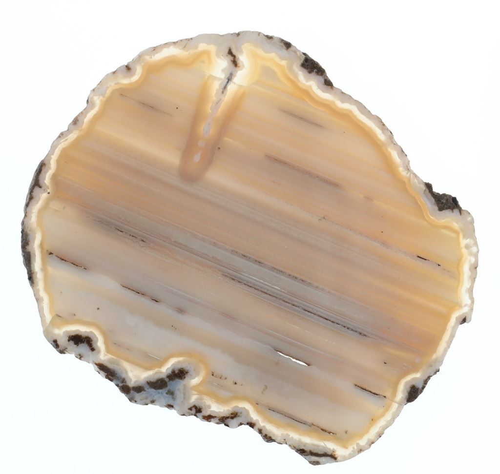 For your consideration is this lot of three agate slabs and one Llanite slab from Texas. Llanite is a porphyritic rhyolite with distinctive phenocrysts of blue quartz (a rare quartz color) and perthitic feldspar (light grayish-orangish). The brown, fine-grained groundmass consists of very small quartz, feldspar, and biotite mica crystals. The Llanite slab shows colors of brown, brown/red, orange, blue and purple throughout the slab. The first agate slab shows a highly polished and smoothed look with colors of brown, grey, light blue and white. The second agate slab has smoothed sides and one side being highly polished. It shows a more rocky outer layer than the first one, with the agate in the center showing colors of cloudy light blue, grey and white. The third and largest agate slab in this lot shows smoothed sides with one side being highly polished. On the unpolished side it reads, "Limb Cast Montana" showing that the agate was found in Montana and the agate was formed in a tree limb. Limb Casts are created when agate is deposited in cavities formed by tree branches covered by volcanic ash. The wood burns away after being covered by the hot ash. Under the right conditions agate fills the empty space. The result is a piece of agate that has the form of a tree limb, hence the name limb Cast. This piece of agate shows stripped colors of white, grey, beige, light blue and tan. All the pieces in this lot show good condition with no signs of obvious damage. The Llanite slab measures 4 3/4" L x 6 1/2" W, The smallest agate slab measures 3 13/16" L x 3 1/2" W, while the largest agate slab measures 4 1/2" L x 5 1/4" W.