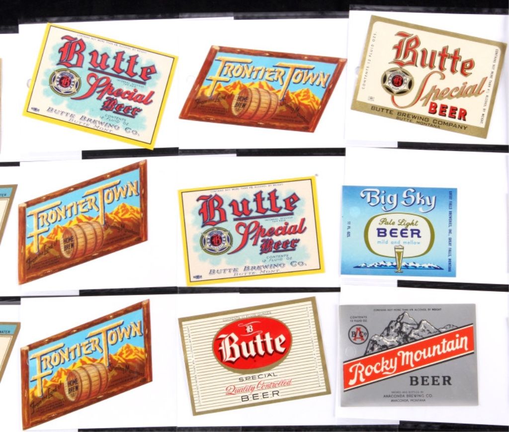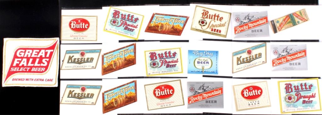 This lot features a collection of Montana beer labels. Included are labels from Kessler, Rocky Mountain, Butte Brewing, Frontier Town, and Great Falls Select. All the labels are in ver food condition.