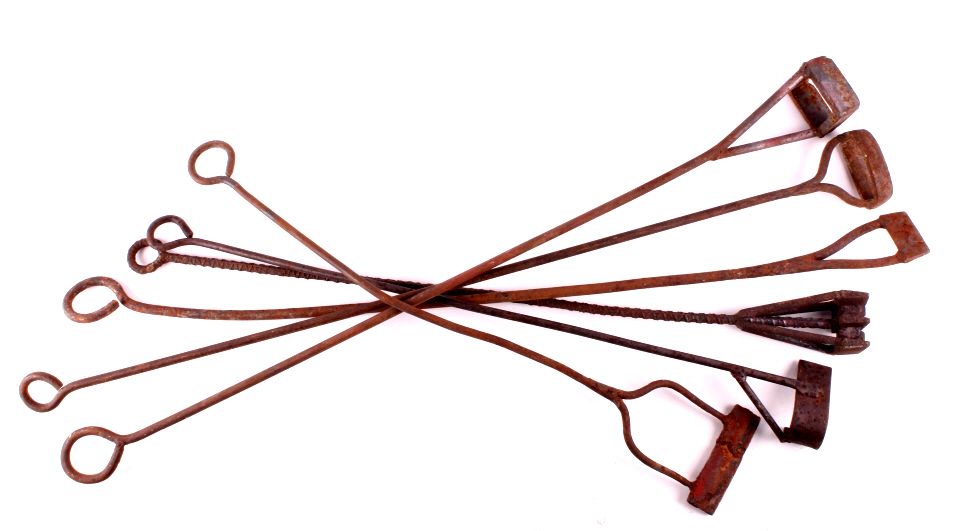 This is a collection of 6 Montana branding irons. They were collected over many years. Included are 2 "bar", a "diamond", a "J", a "D", and an "HR". All the branding irons are in good condition. They measure