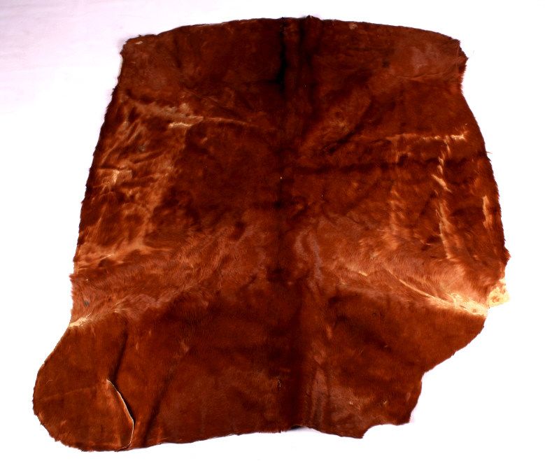 This is a Montana cow hide. The hide is a beautiful reddish brown color and is in very good condition. It would make a great decor piece. The Montana cow hide is 54" x 66".
