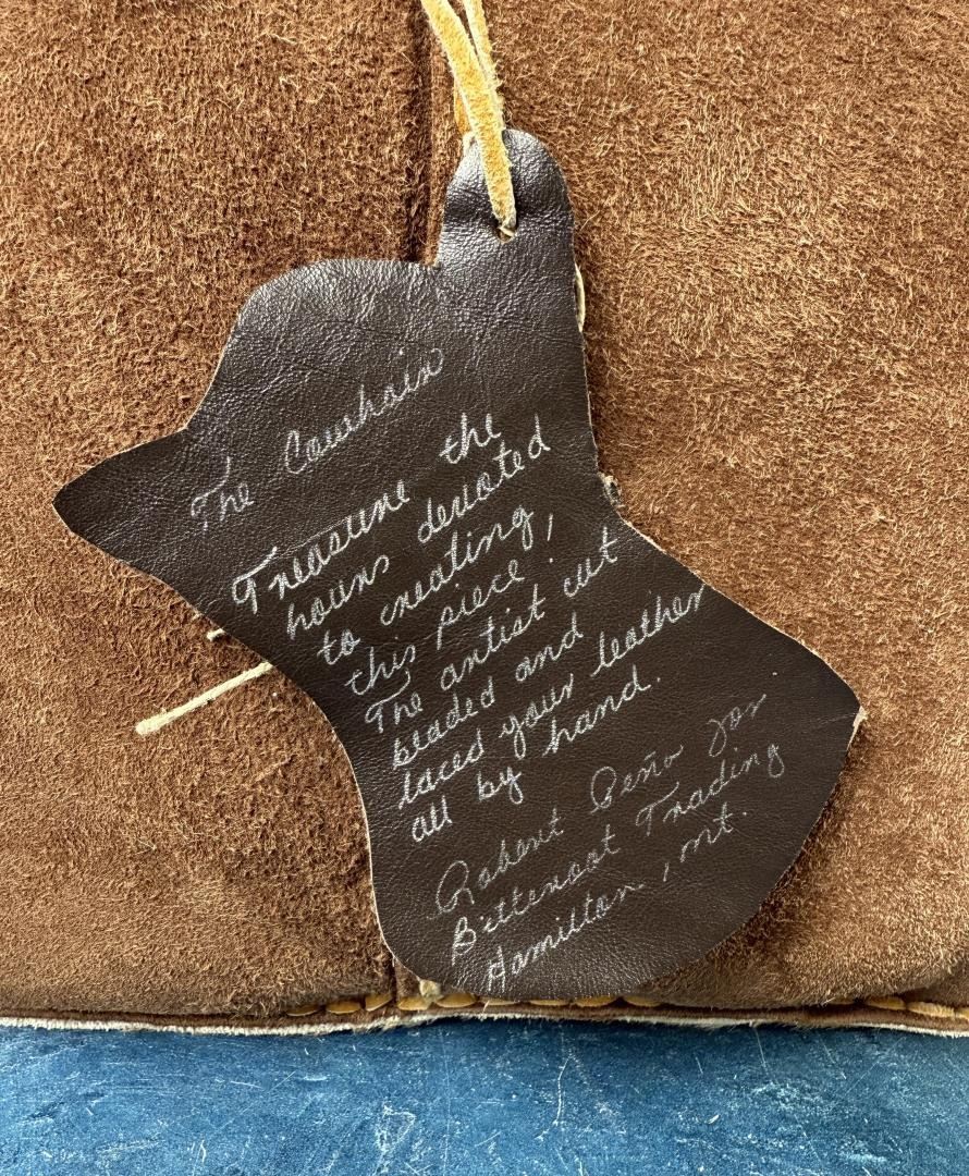 Made by Robert Pena Jr. at Bitterroot Trading Hamilton Montana. 18 7/8" by 18 1/2" including fringe.