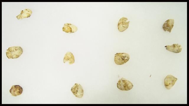 Circa 1970, Framed collection of twelve Montana elk ivories. 5/8" to 1"