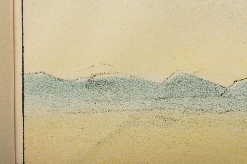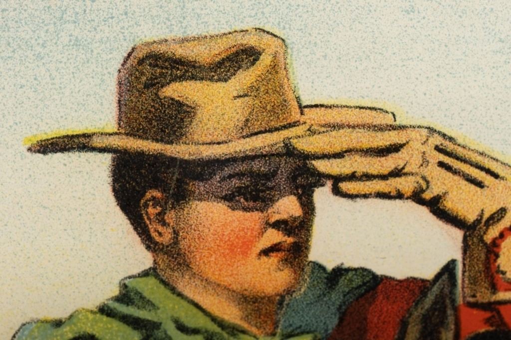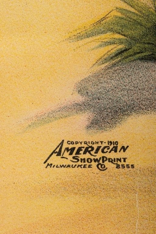 Item/Description: Framed stone lithograph depicting a cowboy on a horse. "Montana Frank" by American Show Print, Milwaukee WI from 1910.