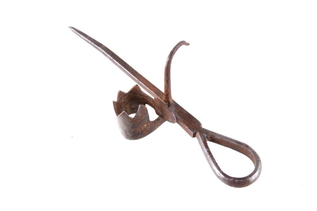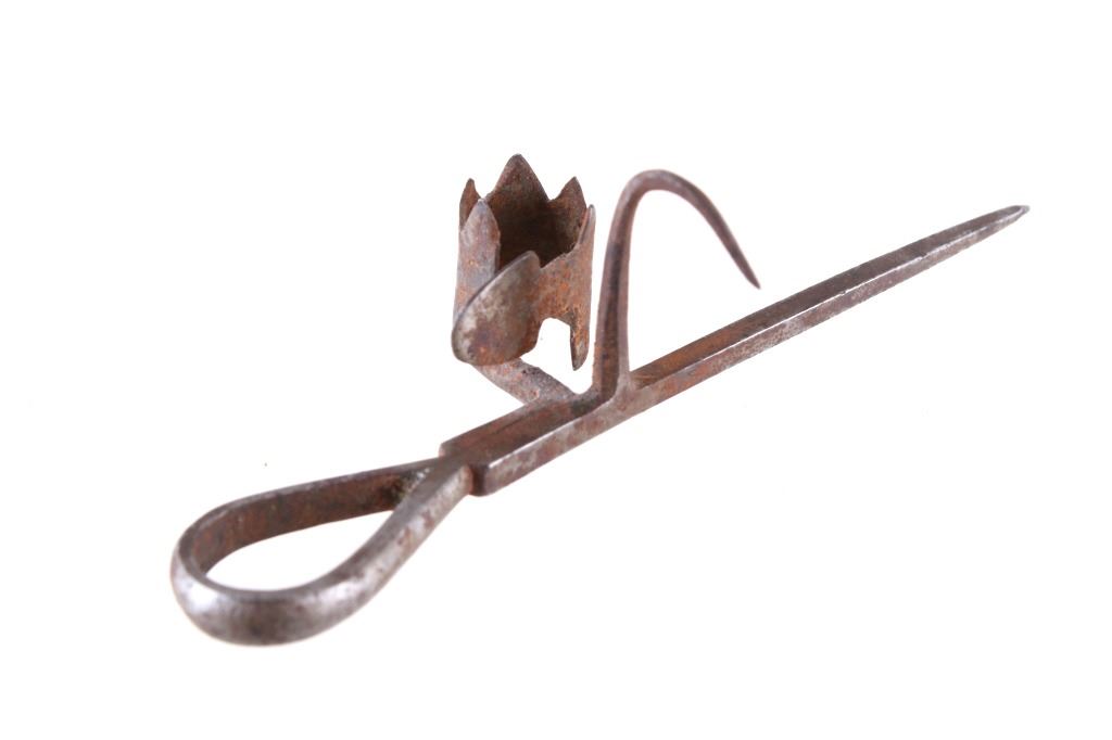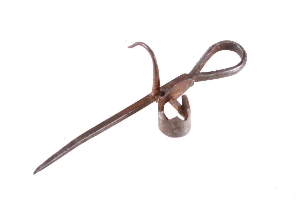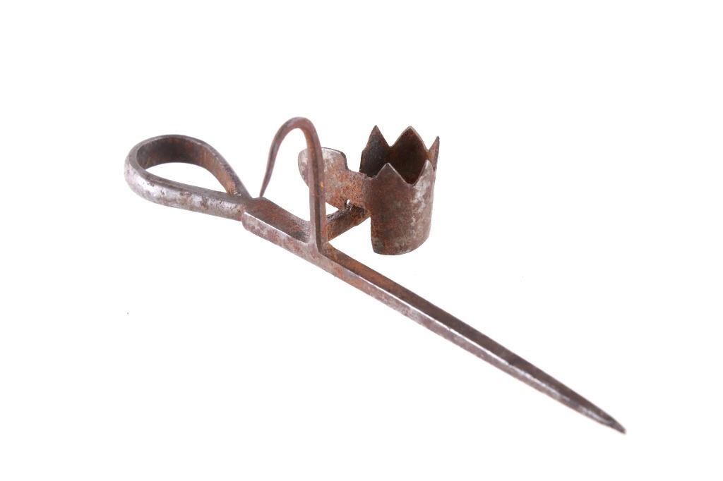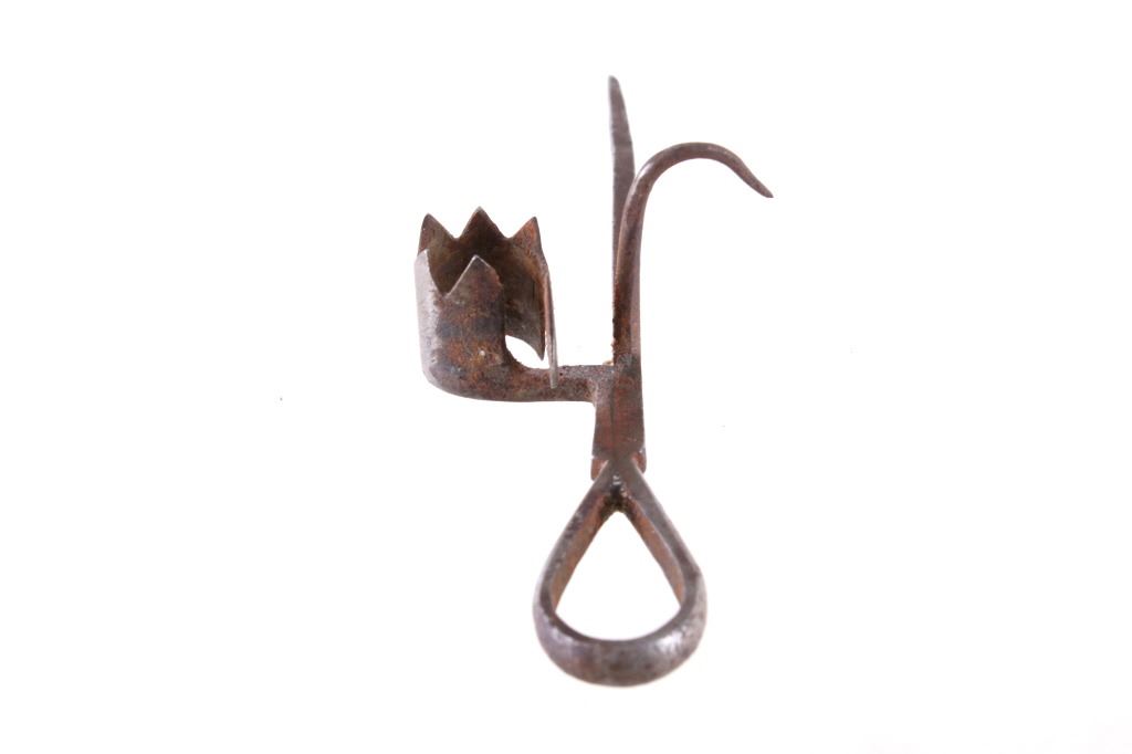 For your consideration is this Montana "Hi-Graders" miners candlestick holder. The holder was used for gold mining in Montana during the 19th Century. he miners candles stick is given the "Hi-Graders (Hi-Graders)" name as the holder has a hollow in the inside of the handle where miners would steel the "HI-Grade" gold while mining. Once the early miners would find the "HI-Grade" gold they would wrap it in wax and press it into the hollow area, unnoticeable to their superiors. The very rare piece measures 1 1/4" x 4 1/2" x 1 1/2".