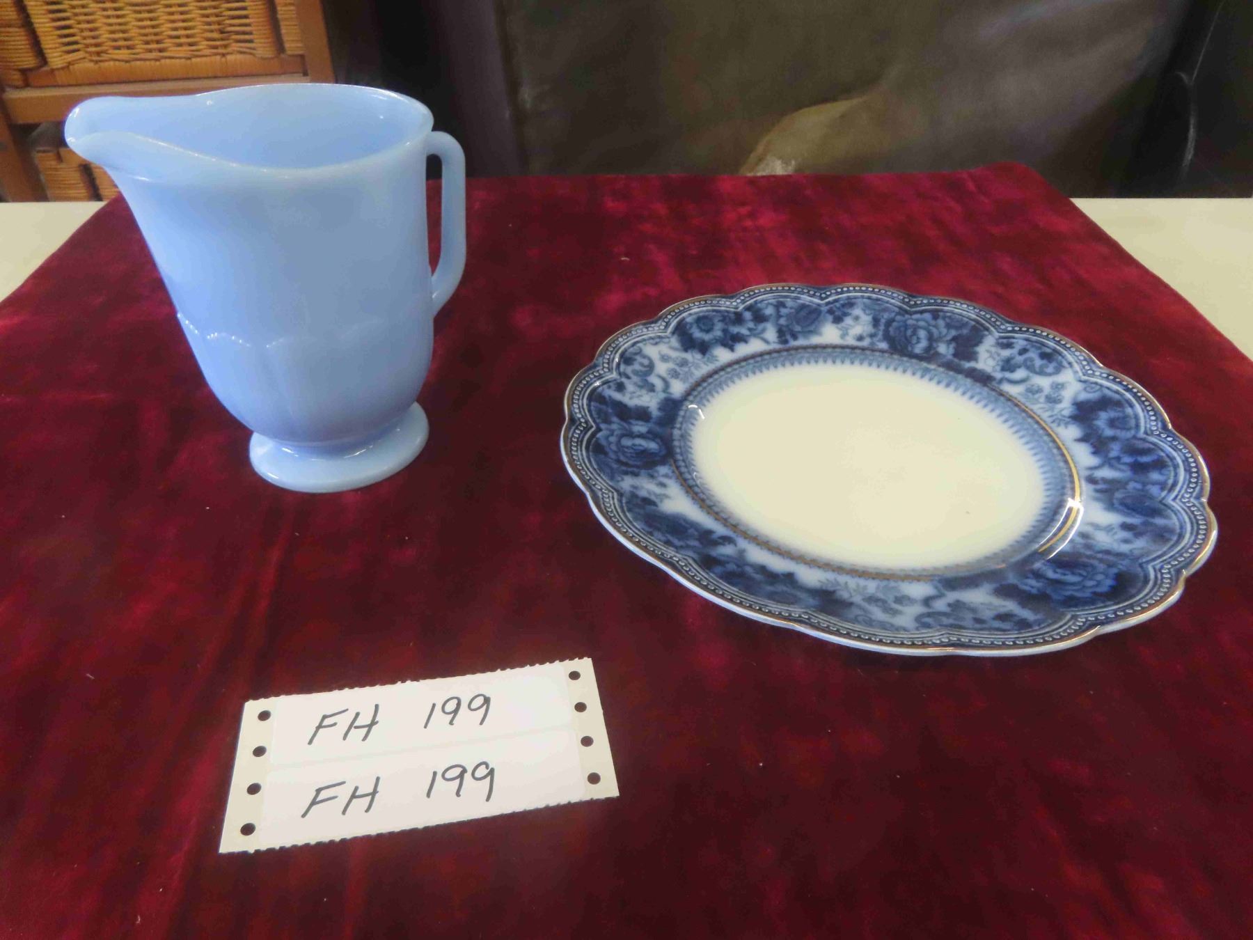 Montana Johnson Brothers China Plate, Pyrex Blue Delphite Small Pitcher