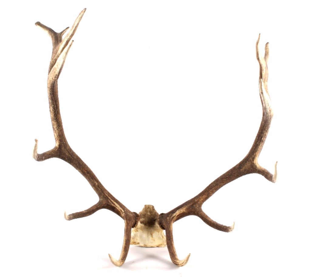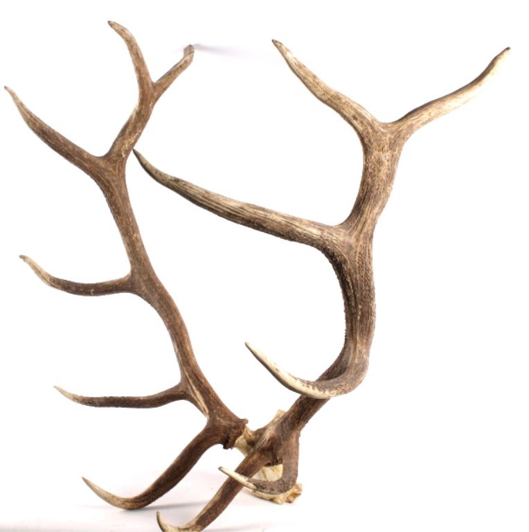 The lot features a set of large 6x7 Elk Antlers taken from Gallatin County, Montana. The set shows great coloring and a thick girth. The impressive rack's spread measures 46.5" wide. Shipping Crate will be 44"x50"x32" total shipping weight 142lbs Packaging $127. (23)