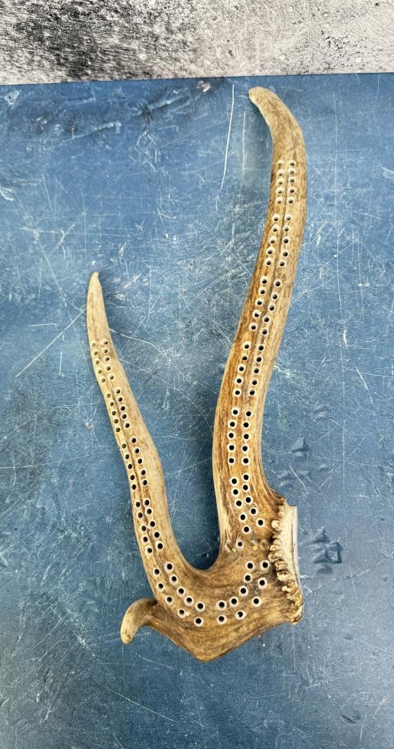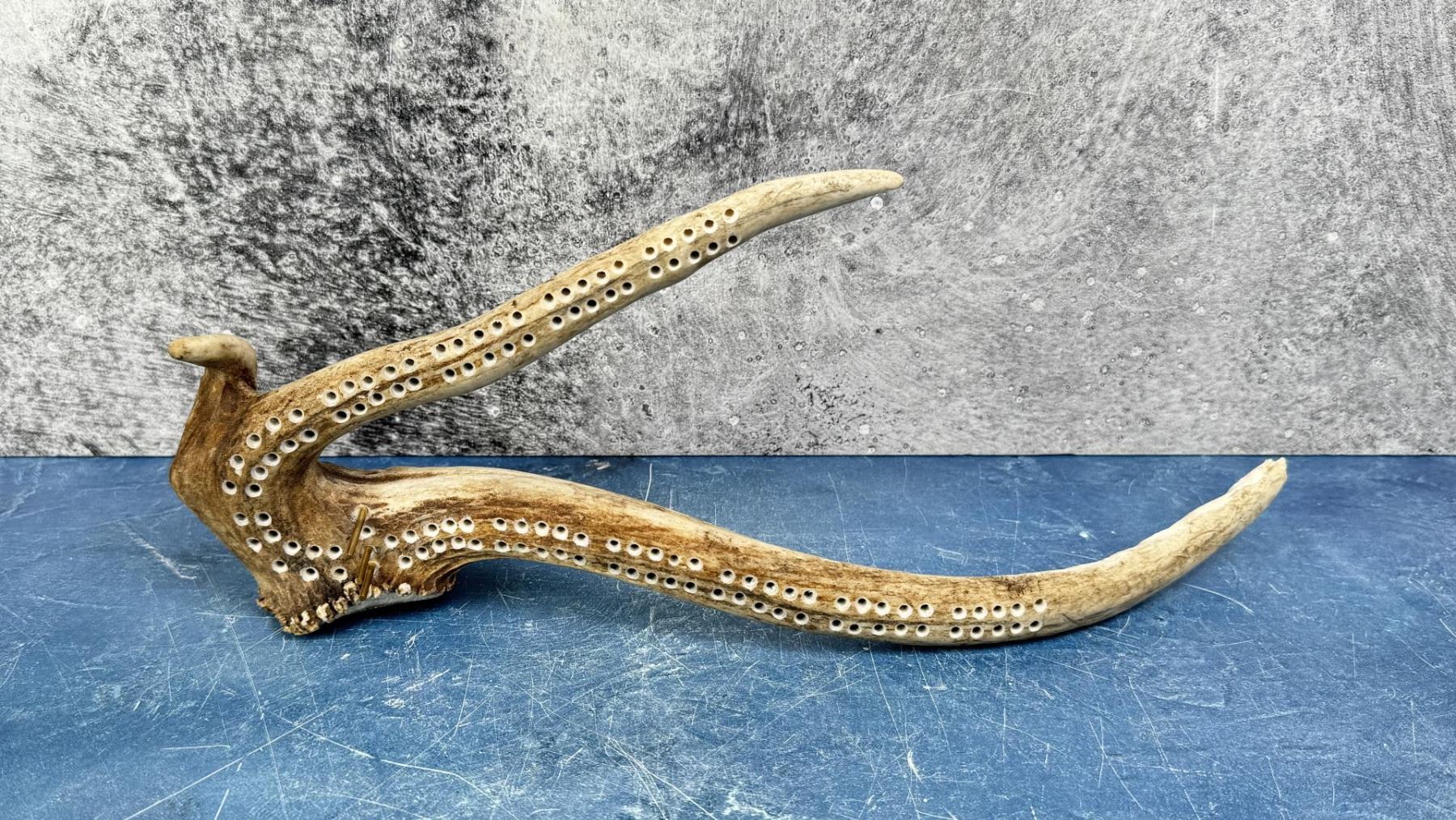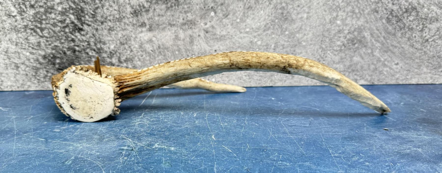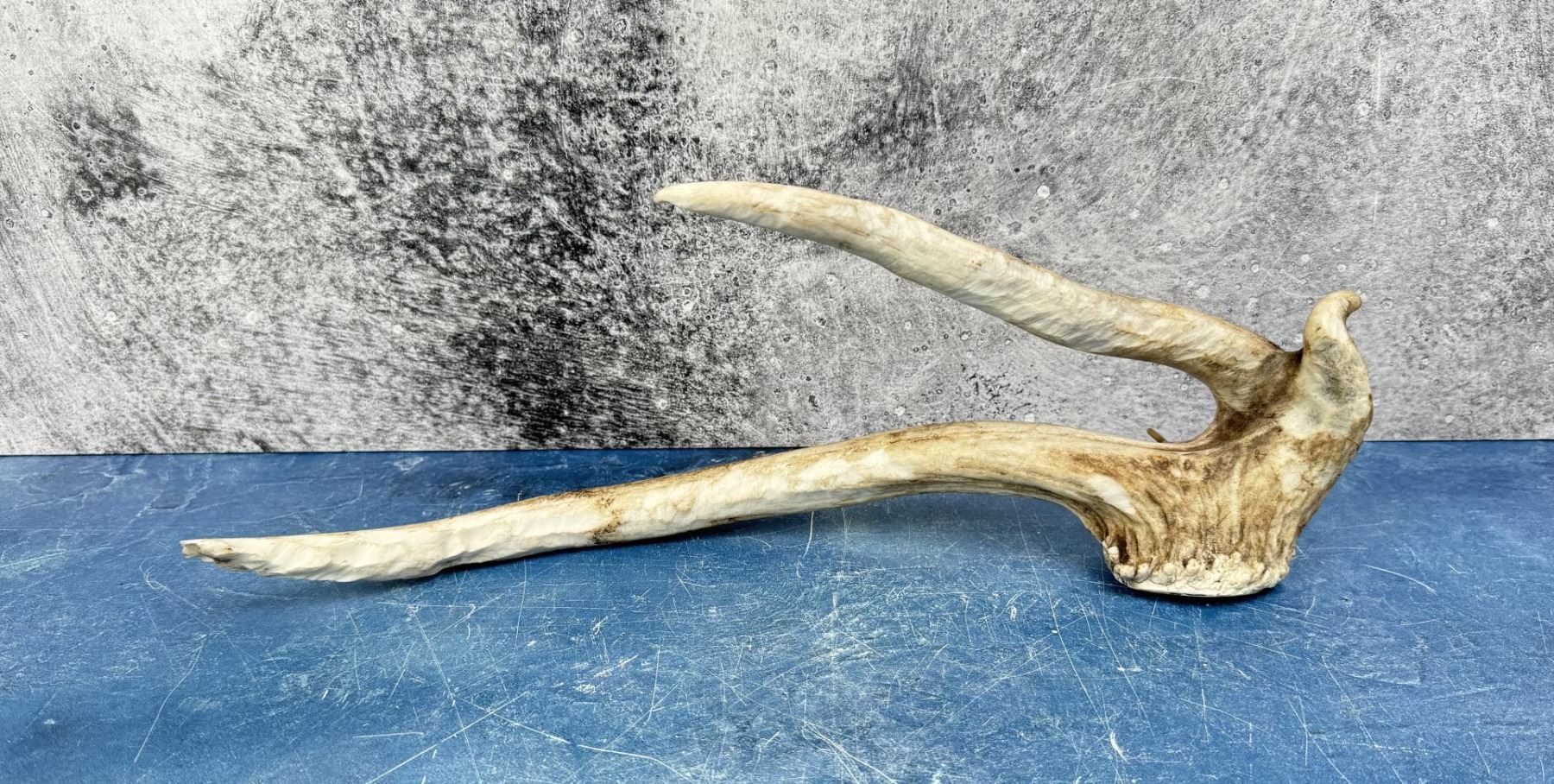 14 1/4" from base to end, 5 1/2" wide from horn to horn