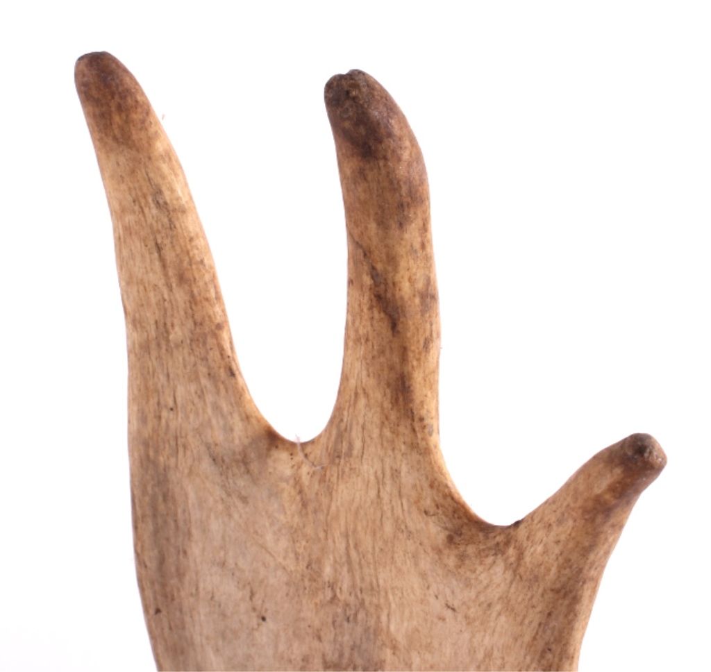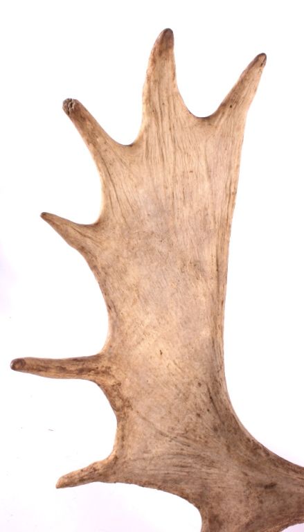 This is a set of Montana moose antlers. This moose was taken in the Gallatin Range near Big Sky. The horns are in good condition showing great symmetry. They are joined by a portion of the skull. The Montana moose antlers measure 37" wide and 22" tall.