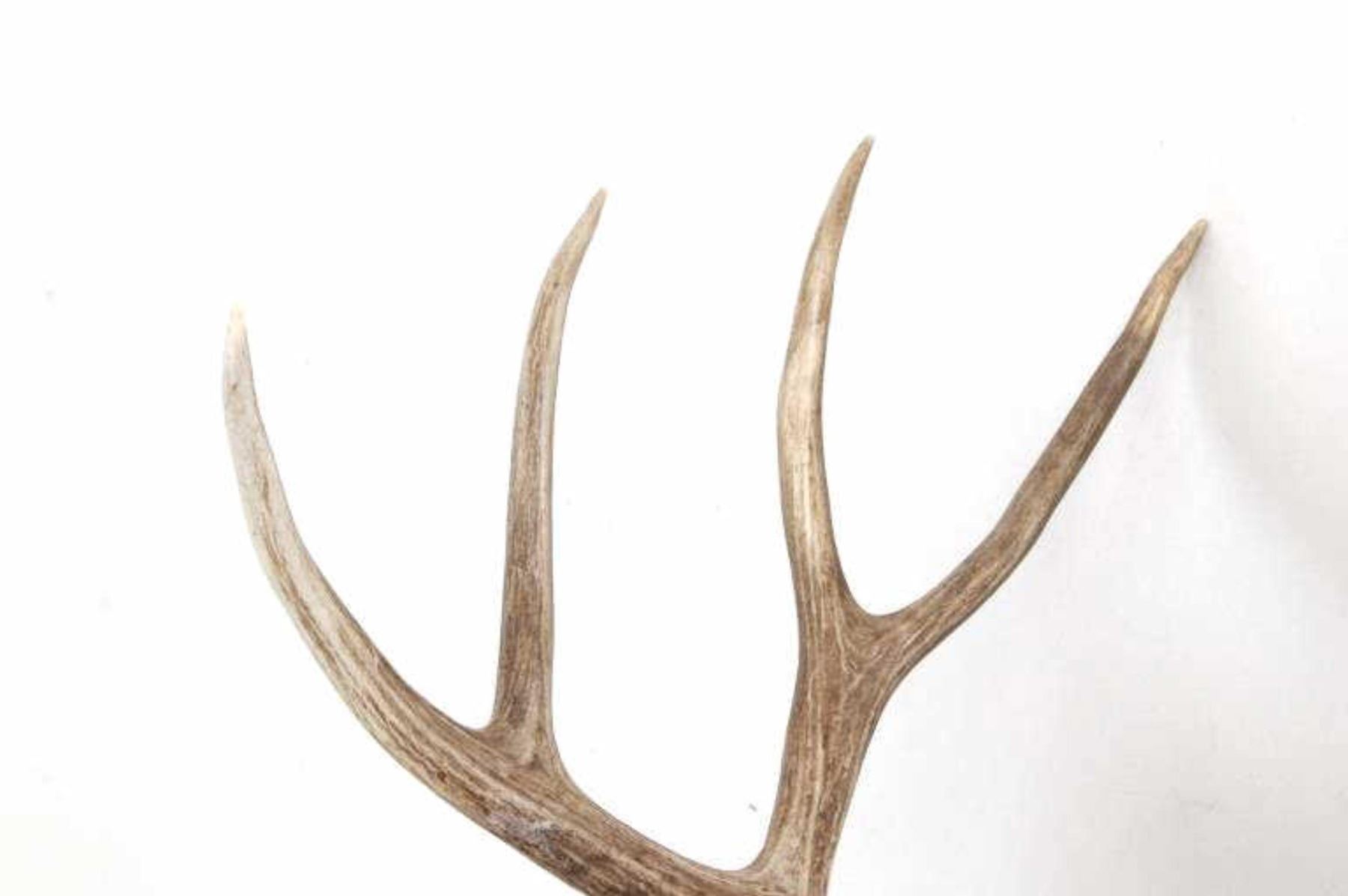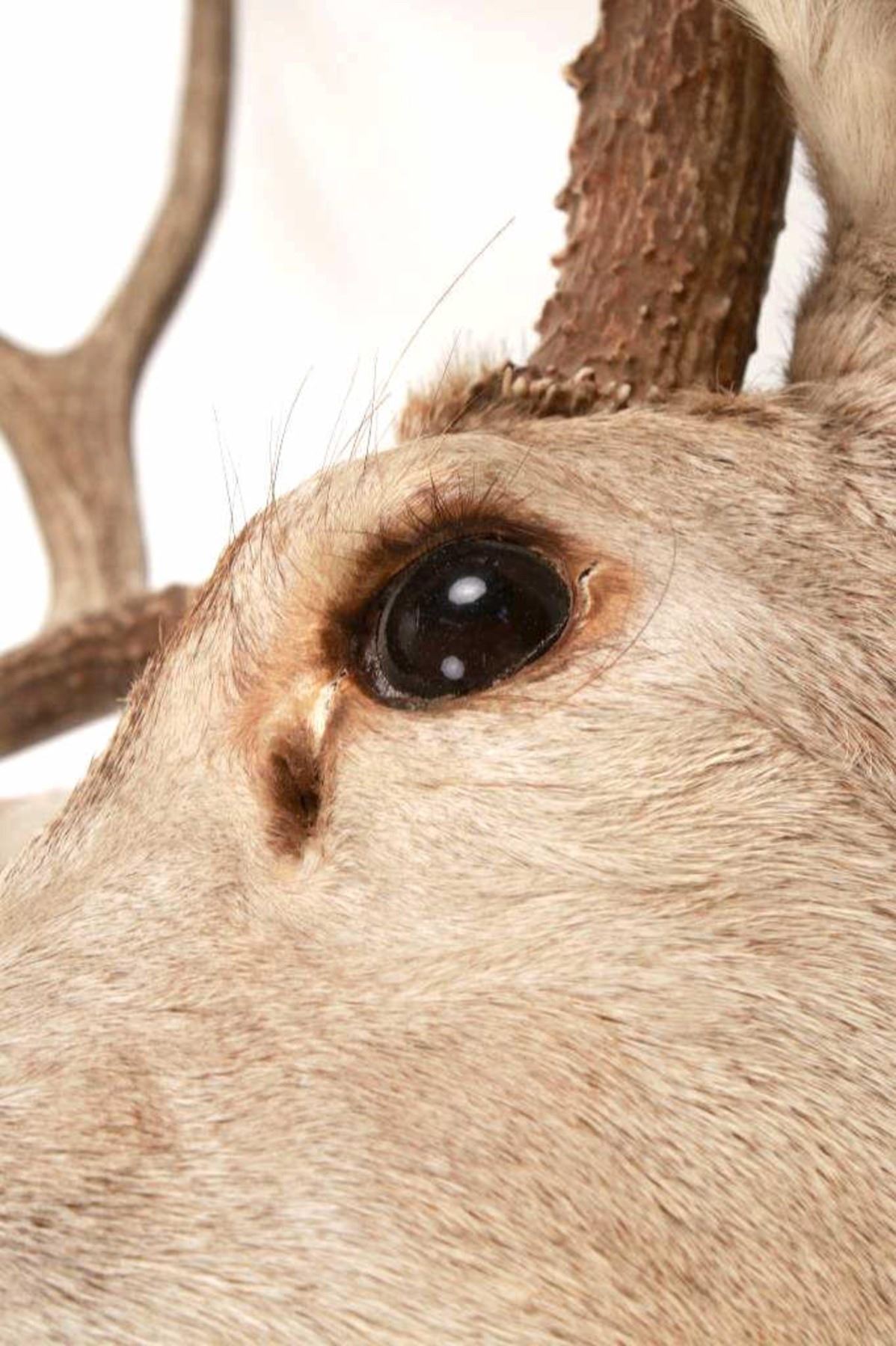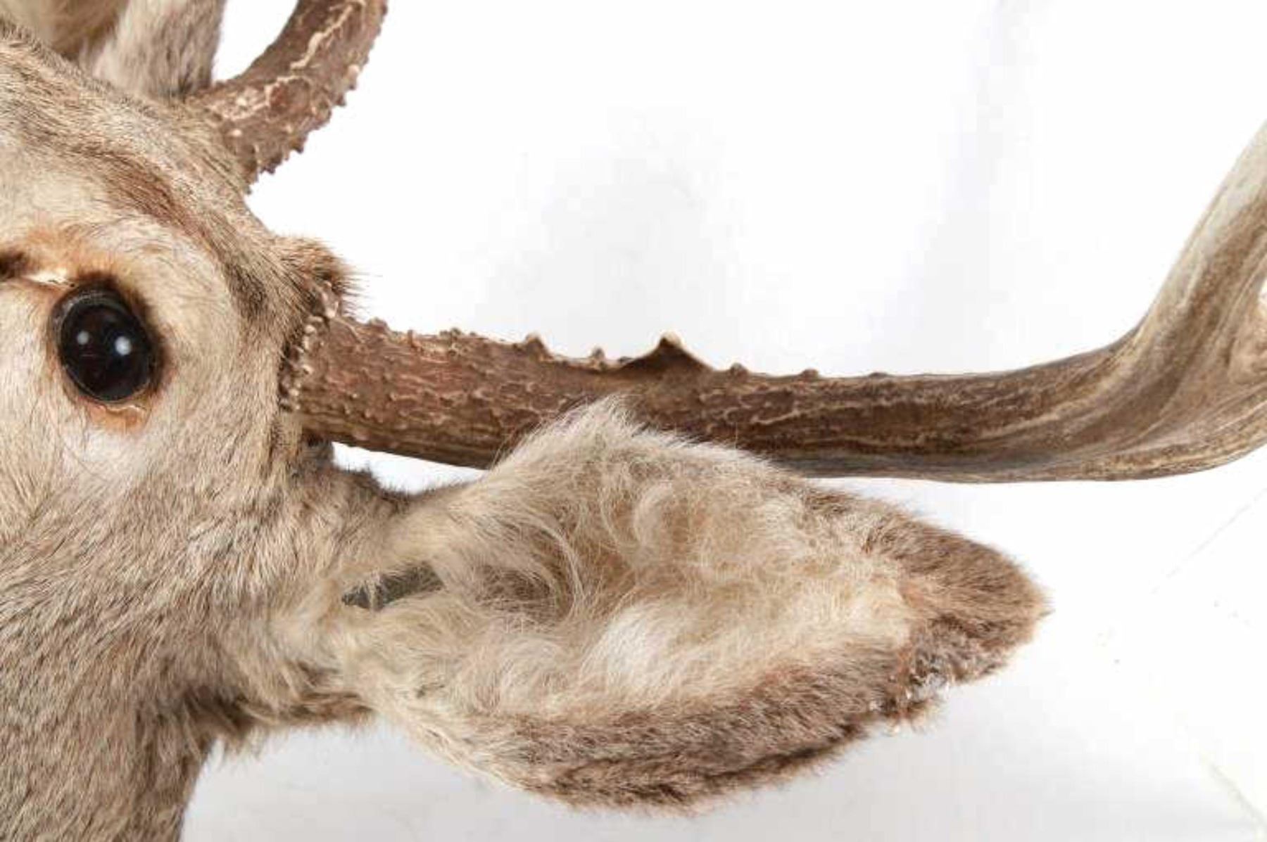 Featured in this lot is this 4x4 Montana Mule Deer Taxidermy Shoulder Mount. The deer shows a large set of 4x4 antlers . The deer shows an excellent show of color on the rack and pristine color gradient. This deer shows soft, off-white face, fading to dark brown at the bottom of the neck. Mule deer was taken in Montana by the consignors father. The condition of this Montana mule deer is well preserved with no obvious signs of damage and shows a well preserved overall condition. The overall measurements of this mount is 29 1/2" x 21" x 27 1/2". The collective weight of this mount is 12lb. The following is the Boone and Crockett - Non-Typical Mule Deer (found online and scored using this method):