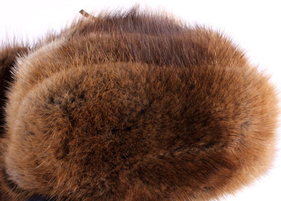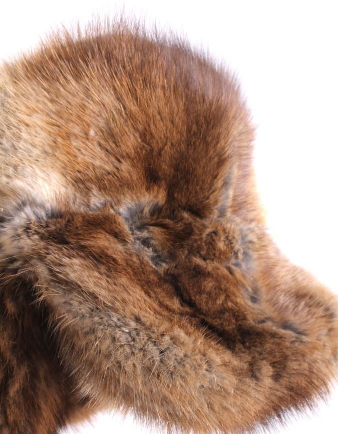 This is a Montana muskrat fur trapper hat. The hat is all handmade showing good condition with a deep, rich color. The hat is approximately size 7.