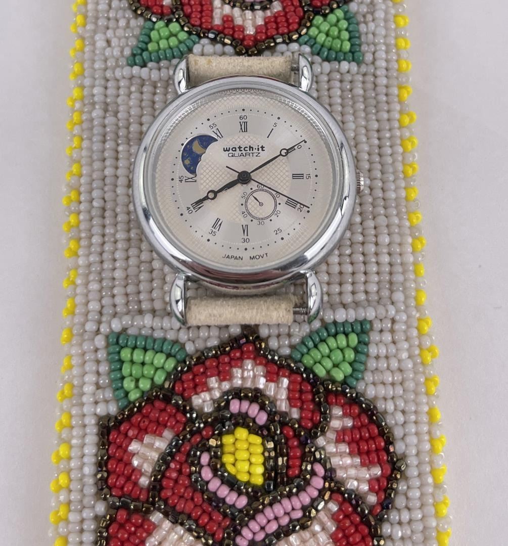 7 7/8" long, 2" wide. Watch It Quartz Moon Phase Watch. Needs a battery.