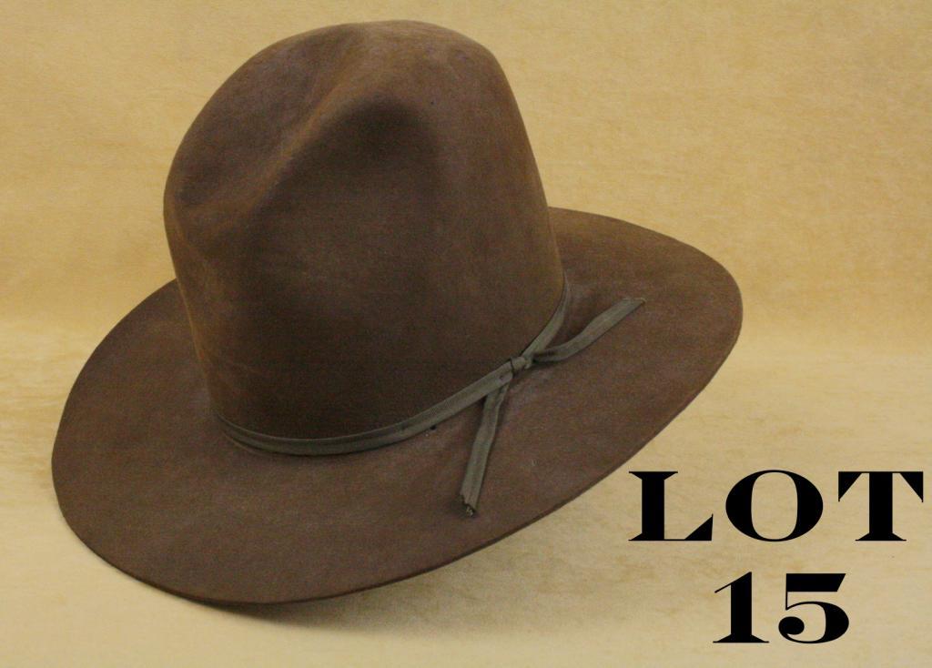 Montana Peak style cowboy hat by Bailey in overall good condition with inside label “Army & Navy Outdoor Store, Lewiston, Idaho. A Sunday-go-to-meeting quality cowboy hat. Est.: $50-$75.