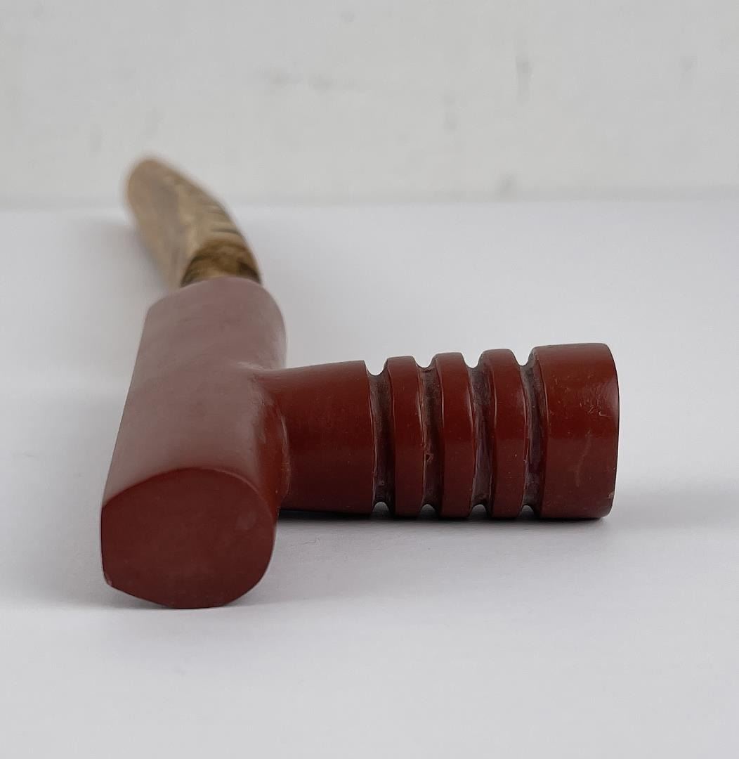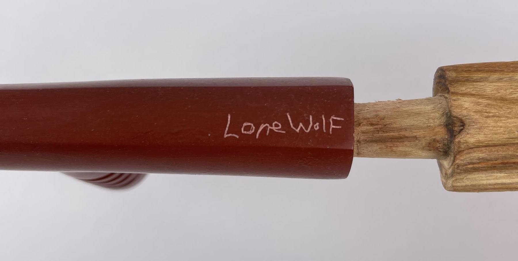Made by Lone Wolf. Bowl is signed as shown. Born and raised on Birch Creek, the southern boundary of the Blackfoot Reservation of Montana, Lone Wolf was said to be one of the more colorful personalities of the Old West. In the "white man's" culture, he became famous for his illustration and commercial art skills as well as for fine art painting and sculpting of western scenes. He was also "one of the first Native American artists to paint in an academic manner and one of the first Native American professionals to utilize his own people as his primary theme" . . .(Gerdts 95) His given name was Hart Merriam Schultz, and he was the son of James W. Schultz and Fine Shield Woman. His father was the author of many books about Indian life, including the widely read "My Life as an Indian," and Lone Wolf was the illustrator, having begun painting at the age of eleven. His sketches on buckskin of western life were quite entertaining to local cowboys with whom he worked as a range rider. He began sculpting as a child with his grandfather, who taught him how to mold riverbank clay into animals. Lone Wolf was educated in Indian schools and his art was encouraged when he was still a youth by Thomas Moran who saw his work and gave him lessons and told him he should get further training. Charles Schreyvogel, noted western artist, gave Lone Wolf his first set of oil paints, and later support came from Theodore Roosevelt, Owen Wister, Buffalo Bill Cody, Charles Russell, Olaf Seltzer and Frederic Remington. In 1904, at age 24, he left the reservation as his mother had died, and his father had moved to the West Coast. That same year, he completed his first watercolor painting of an Indian subject, and he also joined his father in California. Beginning 1905, because of health-related reasons, he began spending his winters in New Mexico and Arizona, and in 1909 at the Grand Canyon, Lone Wolf met Thomas Moran, who encouraged him to become a professional artist. Following Moran's advice, in 1910 he started formal art training with attendance at the Los Angeles Art Students League. From 1914 to 1915, he studied in Chicago at the Art Institute. During this period, he illustrated more of his father's books, and one of them, Bird Woman, his father dedicated to him. Lone Wolf traveled and painted across the West and set up tepee studios at the Grand Canyon and Glacier National Park at Saint Mary's Lake and later in the mountains of Arizona. In 1916, he had a sell out show in Los Angeles, his first show in that city. There he took further lessons in sculpture and created a bronze titled Riding High which brought him much recognition. Another bronze, Camouflage, is at the Brookgreen Gardens in Brookgreen, South Carolina, and three of his paintings are in the collection of the University of Nebraska. His style was that of Remington and Russell, and he signed his works with a wolf's face. He lived the last fifteen years of his life in Tucson, Arizona, with his wife Naoma, and he is buried on the Blackfeet Reservation.