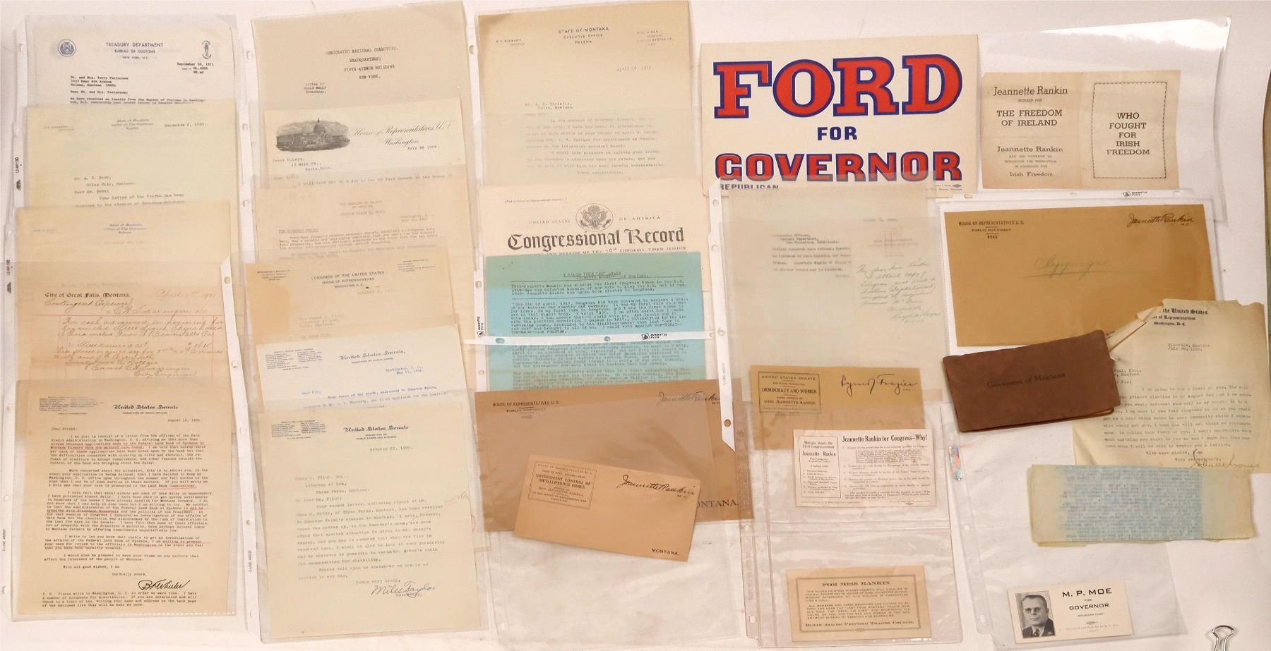 About 25 pieces of Montana political ephemera c. 1906-71. Many related to Jeanette Rankin. Also Ford, Governors booklet, Will Aiken, MP Moe, HK Rainey etc.