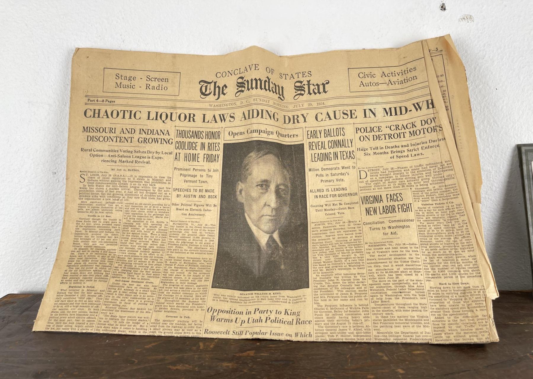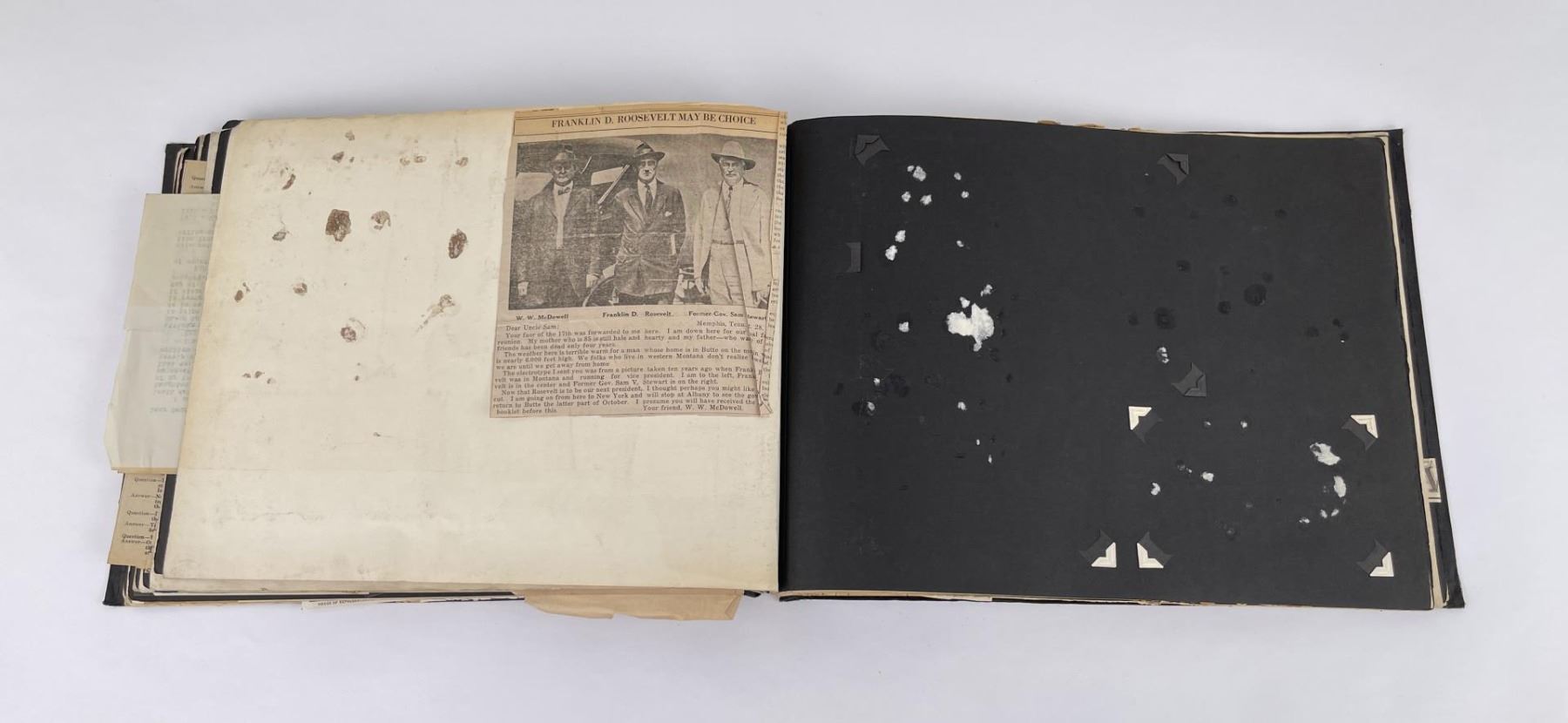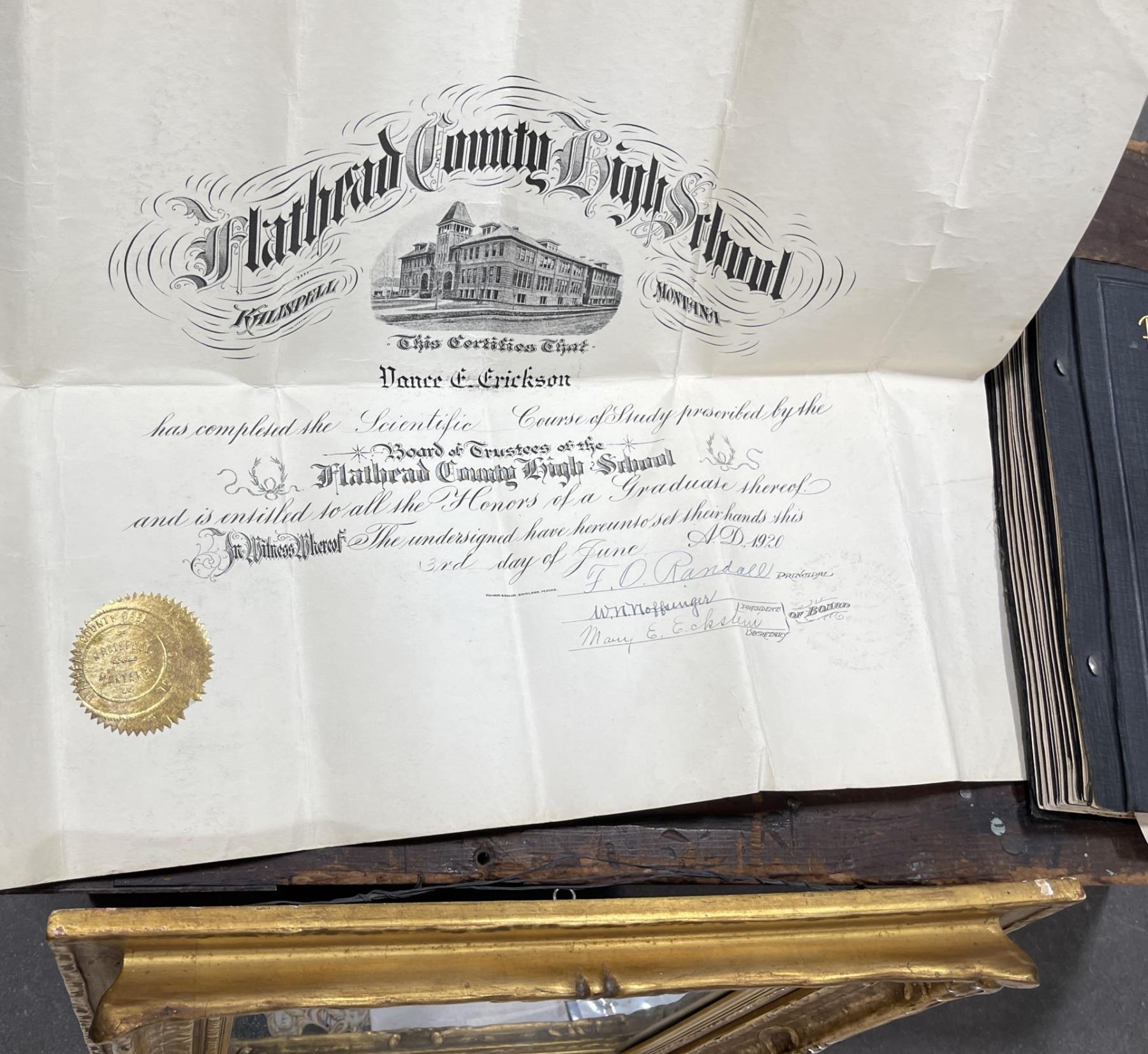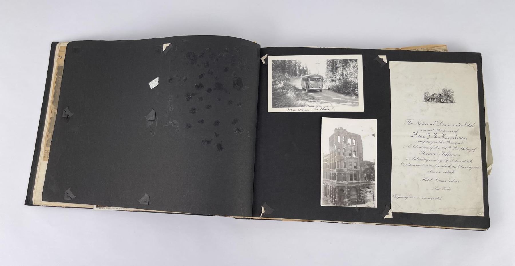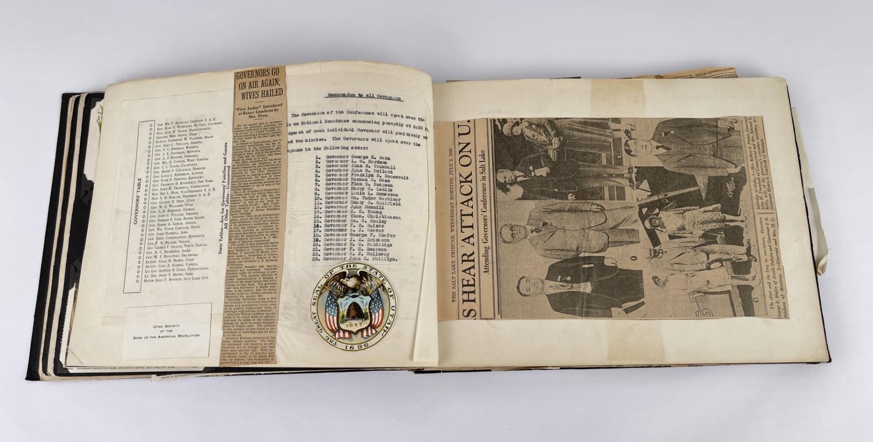 Phenomenal grouping of personal effects. All belonged to John E. Erickson. Includes Newspapers, Letters, Documents, Certificates, Photo Album, Last Will, and his original stagecoach trunk. John Edward Erickson (March 14, 1863 – May 25, 1946) was an American politician of the Democratic Party from Montana. He served as the eighth Governor of Montana and as a United States Senator. Erickson was admitted to the Kansas state bar in 1891. He moved to Great Falls, Montana in 1892 and later to Choteau, Montana, where he continued practicing law. He served as county attorney of Teton County from 1897 to 1905, then judge of the eleventh judicial district of Montana from 1905 to 1915. He resumed the practice of law at Kalispell, Montana in 1916.[7] A Democrat, Erickson was elected in 1924 as the eighth Governor of Montana. He won reelection in 1928, and again in 1932, making him the only governor elected to three terms. He served from January 4, 1925 to March 13, 1933. During his tenure, a new state income tax was sanctioned, a fund to financially equalize impoverished rural schools was established, a gasoline tax was implemented, a new banking law was authorized, and a tax on mining profits was initiated. On March 13, 1933, Erickson resigned as governor whereupon Frank Cooney, formerly Erickson's lieutenant governor and now the acting governor, appointed Erickson to the United States Senate to fill the vacancy caused by the death of Thomas J. Walsh. Although on the face of it, this appears to have been a rather brazen attempt on Erickson's part to establish himself in the Senate, Montana Senator Burton K. Wheeler tells a different story in his autobiography. Apparently Montana's Democratic National Committeeman, J. Bruce Kremer, was certain to be appointed to Walsh's seat. Walsh had very much disliked Kremer and worried that Kremer would succeed him if he (Walsh) accepted Franklin D. Roosevelt's appointment to his cabinet, as Attorney General (which Walsh had, at the time of his death). After Walsh's untimely demise, his daughter Genevieve Gudger asked Senator Wheeler if he would intercede with Governor Erickson to stop Kremer's appointment. As Wheeler also disliked Kremer, he agreed to do so. In Wheeler's telling, it was he who talked a reluctant Erickson into getting himself appointed. Erickson ran in 1934 to fill the remainder of Walsh's Senate term, but finished third in the primary, behind James E. Murray, who went on to win the special general election, and James F. O'Connor. He continued to serve in the Senate through November 6, 1934, the day that Murray was elected, at which point he resigned in favor of Murray, in order to give Murray seniority rights over other freshman senators, who didn't start their terms until 1935. Following his return from the Senate, Erickson practiced law in Helena, Montana, until his death.