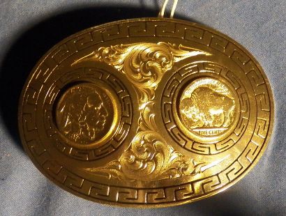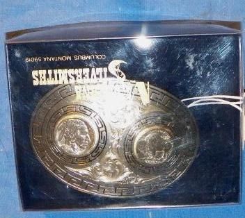 Buffalo Nickel Silverplated Belt Buckle made by Montana Silversmiths