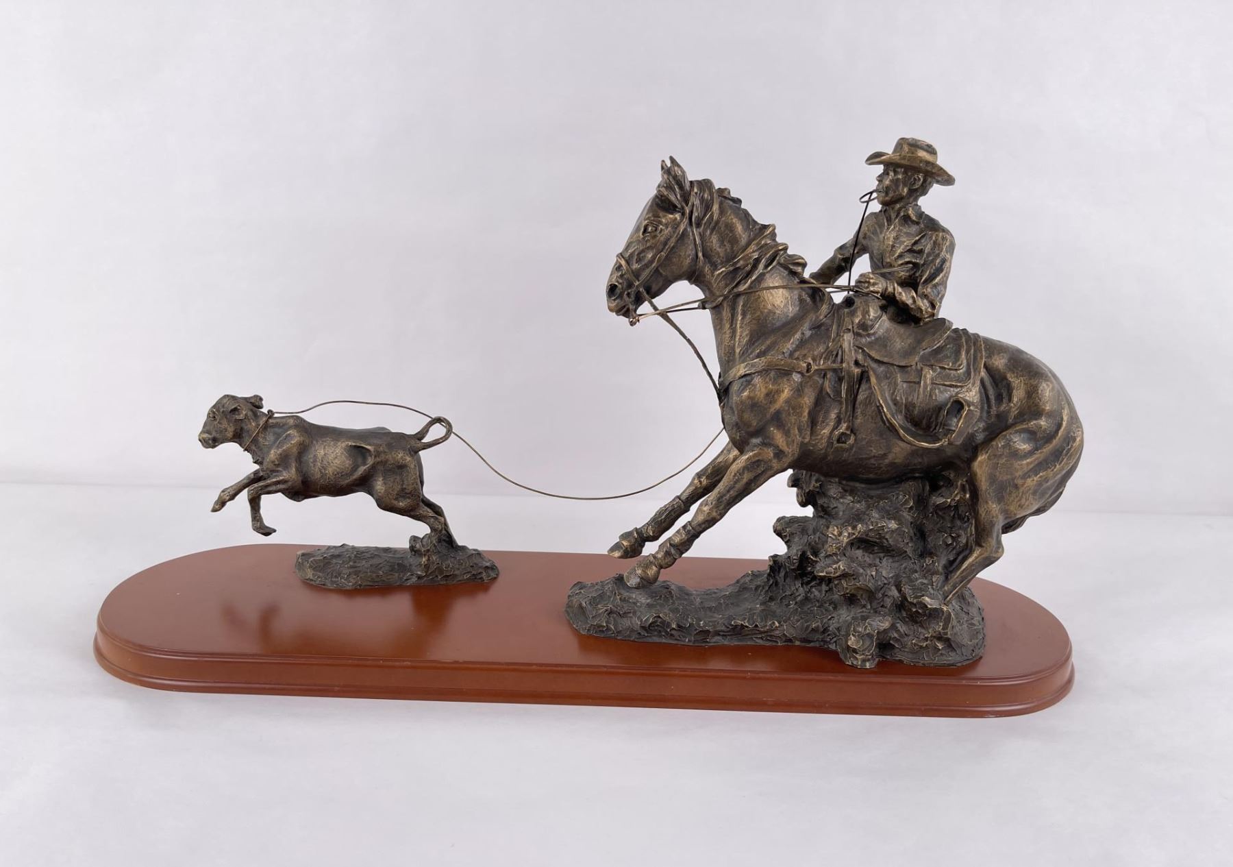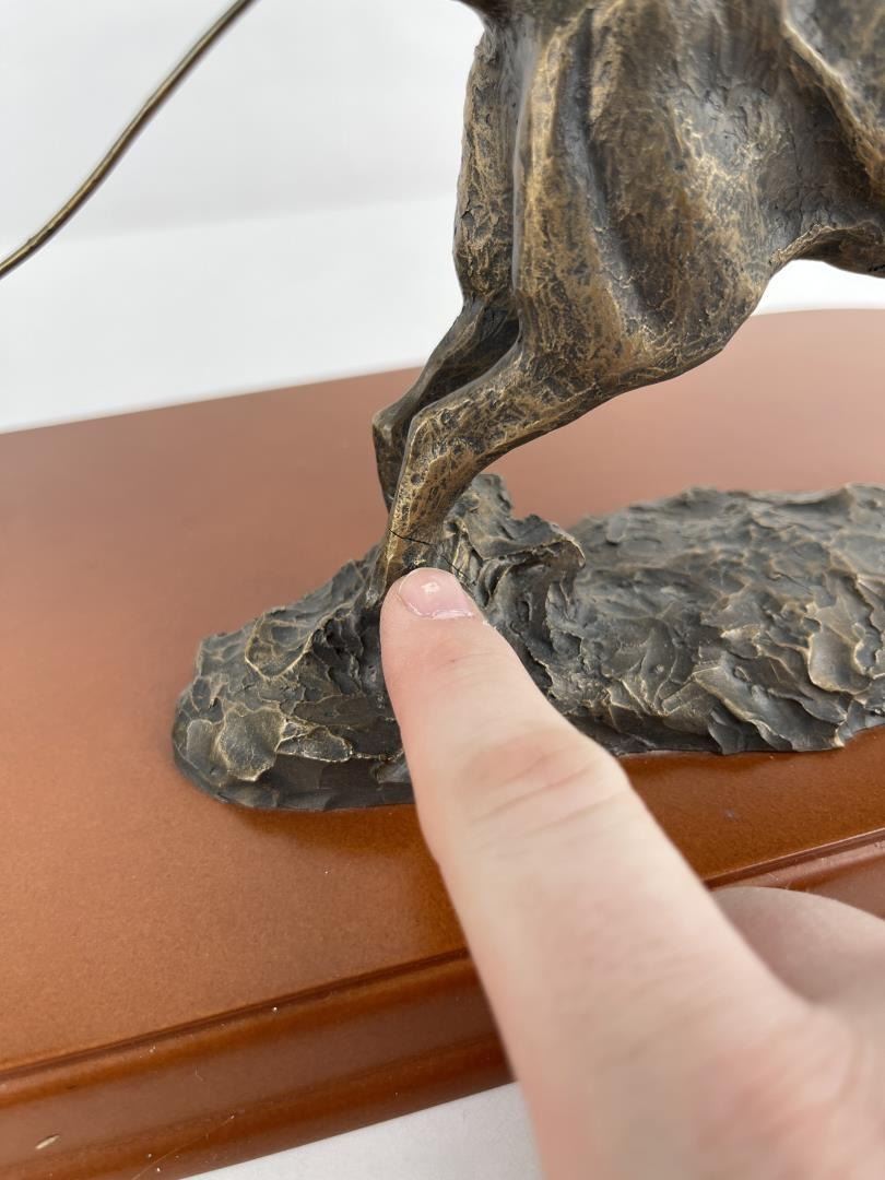 13 5/8" tall, 27" long. Cows leg has a crack as shown.