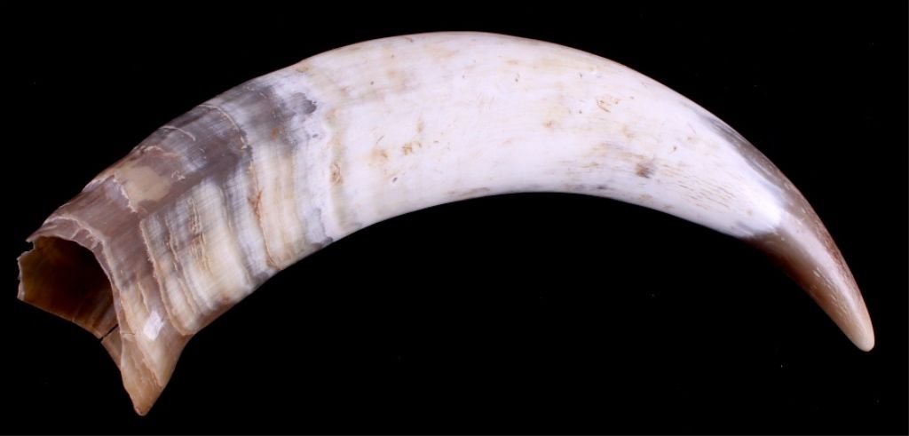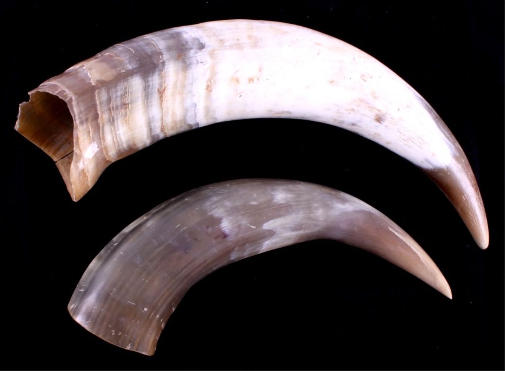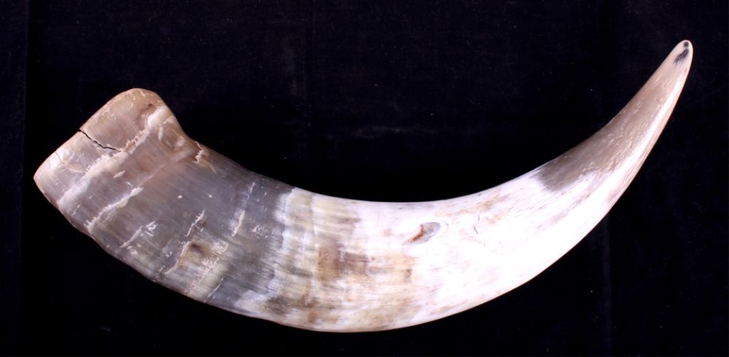 This is a pair of Montana steer horns. They have great color and are in good condition. They would make a great decor piece or could be made into a powder horn. The larger one measures 3.75" in diameter and is 19" long.