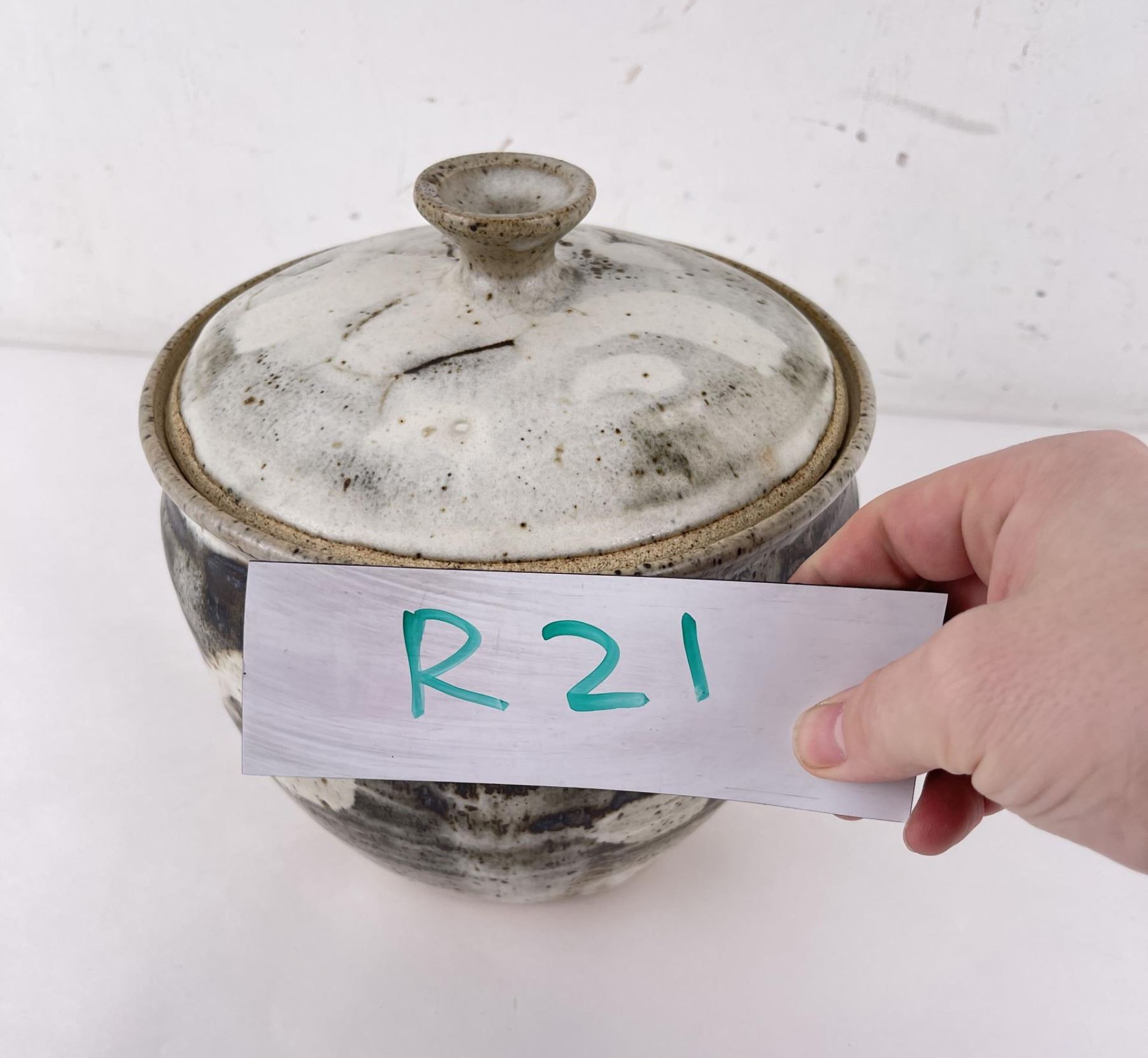 8" diameter, 8 1/2" tall.