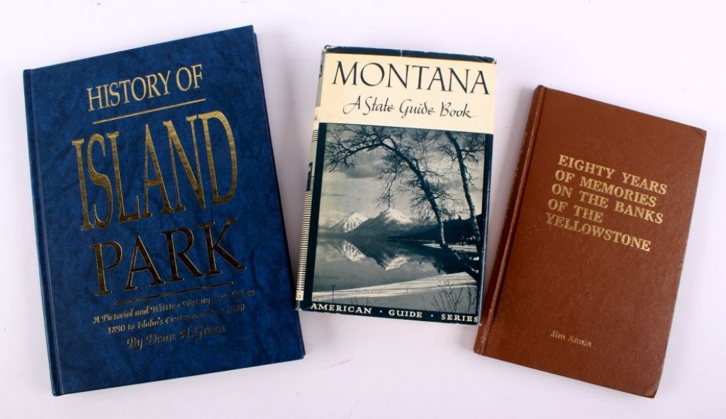 This lot includes 3 collectible books. They are "Eighty Years of Memories on the Banks of the Yellowstone" by Jim Annin, "Montana A state Guide Book", and "History of Island Park" by Dean H. Green. All the books are invery good condition.