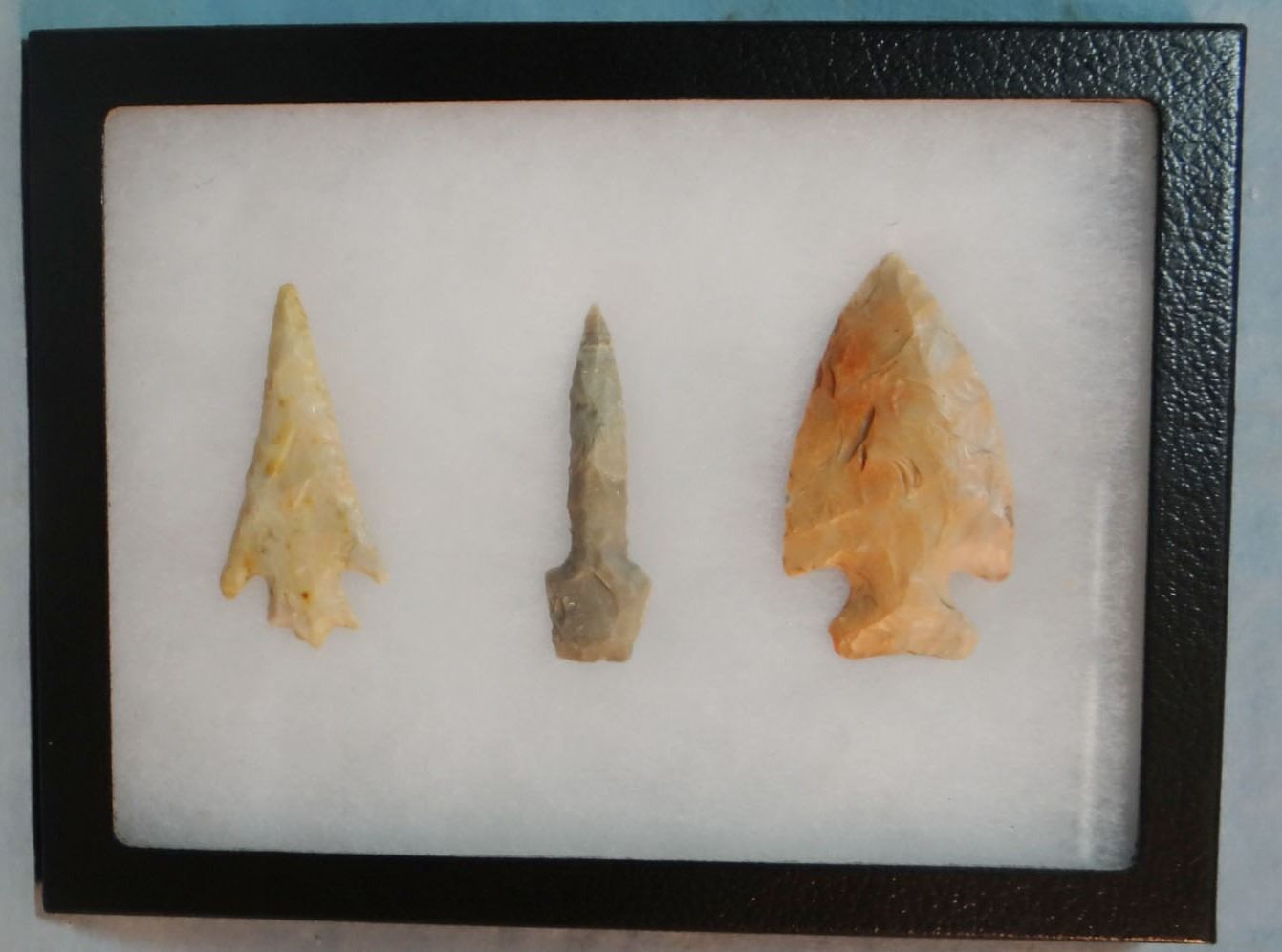 Montana points, 2 arrowheads, 1 awl, 2- 2 3/4"