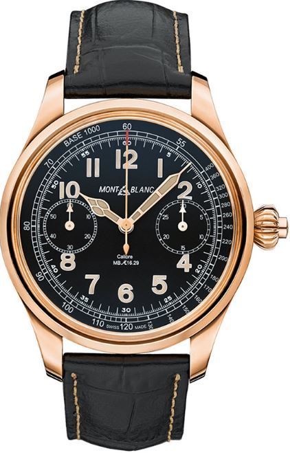 Model: 112637 - CASE = [Material:18kt Rose Gold], [Case Diameter:44], [Case Thickness:10.95mm], [Bezel:Fixed], [Case Back:Skeleton], [Water Resistant:30 Meters - 100 Feet], [Crystal:Scratch Resistant Sapphire], DIAL = [Color:Black], MOVEMENT = [Type:Manual Winding Chronograph], [Crown:Push In], BAND = [Clasp:Tang], [Type:Black Alligator Leather], (Usually ships in 1 to 2 weeks.)