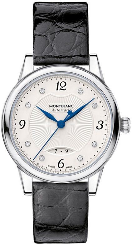 Model: 111055 - CASE = [Material:Stainless Steel], [Case Diameter:30], [Case Thickness:9.5mm], [Bezel:Fixed], [Case Back:Skeleton], [Water Resistant:30 Meters - 100 Feet], [Crystal:Scratch Resistant Sapphire], DIAL = [Color:Silvery-white Guilloche], MOVEMENT = [Type:Automatic, 38 Hour Power Reserve], [Crown:Push In], BAND = [Clasp:Tang], [Type:Black Alligator Leather], (Usually ships in 1 to 2 weeks.)