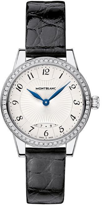 Model: 111208 - CASE = [Material:Stainless Steel], [Case Diameter:27], [Case Thickness:6.8mm], [Bezel:Fixed], [Case Back:Solid], [Water Resistant:30 Meters - 100 Feet], [Crystal:Scratch Resistant Sapphire], DIAL = [Color:Silver], MOVEMENT = [Type:Quartz], [Crown:Push In], BAND = [Clasp:Tang], [Type:Black Alligator Leather], (Usually ships in 1 to 2 weeks.)