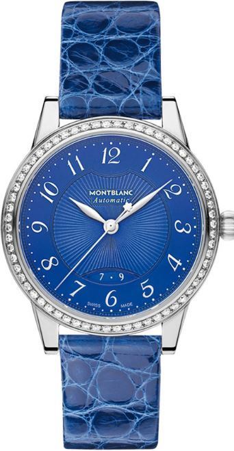Model: 111291 - CASE = [Material:Stainless Steel], [Case Diameter:30], [Case Thickness:9.5mm], [Bezel:Fixed], [Case Back:Skeleton], [Water Resistant:30 Meters - 100 Feet], [Crystal:Scratch Resistant Sapphire], DIAL = [Color:Blue], MOVEMENT = [Type:Automatic], [Crown:Push In], BAND = [Clasp:Tang], [Type:Blue Alligator Leather], (Usually ships in 1 to 2 weeks.)