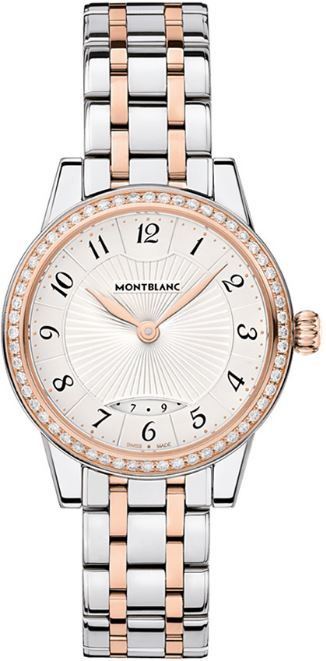 Model: 111211 - CASE = [Material:Rose Gold and Stainless Steel], [Case Diameter:27], [Case Thickness:6.8mm], [Bezel:Fixed], [Case Back:Solid], [Water Resistant:30 Meters - 100 Feet], [Crystal:Scratch Resistant Sapphire], DIAL = [Color:Silver], MOVEMENT = [Type:Quartz], [Crown:Push In], BAND = [Clasp:Folding], [Type:Rose Gold and Stainless Steel], (Usually ships in 1 to 2 weeks.)