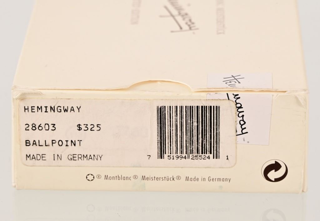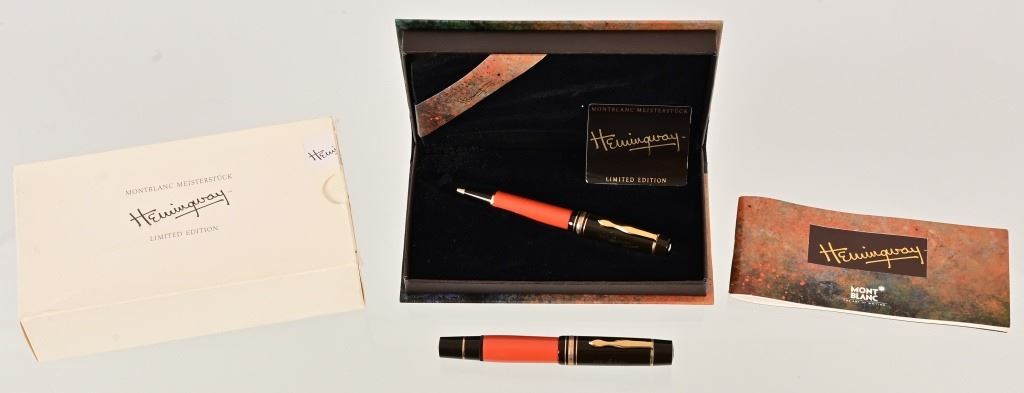 Montblanc Meisterstruck Hemingway Limited Writer's Edition fountain pen with 18K gold 4810 Broad nib. Excellent condition. Montblanc Hemingway Writer's Edition Rollerball. Excellent condition in original box