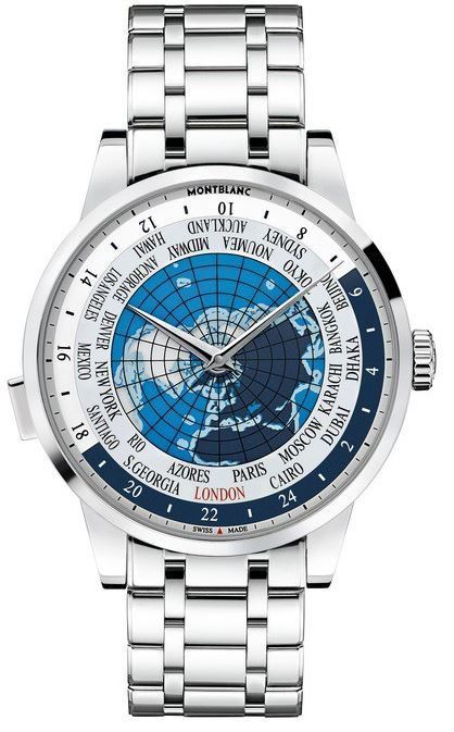 Model: 112309 - CASE = [Material:Stainless Steel], [Case Diameter:43], [Case Thickness:11.99mm], [Bezel:Fixed], [Case Back:Solid], [Water Resistant:30 Meters - 100 Feet], [Crystal:Scratch Resistant Sapphire], DIAL = [Color:Sapphire Crystal with City Names and World Map], MOVEMENT = [Type:Automatic, 42 Hour Power Reserve], [Crown:Push In], BAND = [Clasp:Folding], [Type:Stainless Steel], (Usually ships in 1 to 2 weeks.)