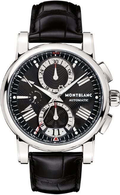 Model: 102377 - CASE = [Material:Stainless Steel], [Case Diameter:44], [Case Thickness:14.5mm], [Bezel:Fixed], [Case Back:Skeleton], [Water Resistant:30 Meters - 100 Feet], [Crystal:Scratch Resistant Sapphire], DIAL = [Color:Black], MOVEMENT = [Type:Automatic Chronograph], [Crown:Push In], BAND = [Clasp:Deployment], [Type:Black Alligator Leather], (Usually ships in 1 to 2 weeks.)