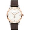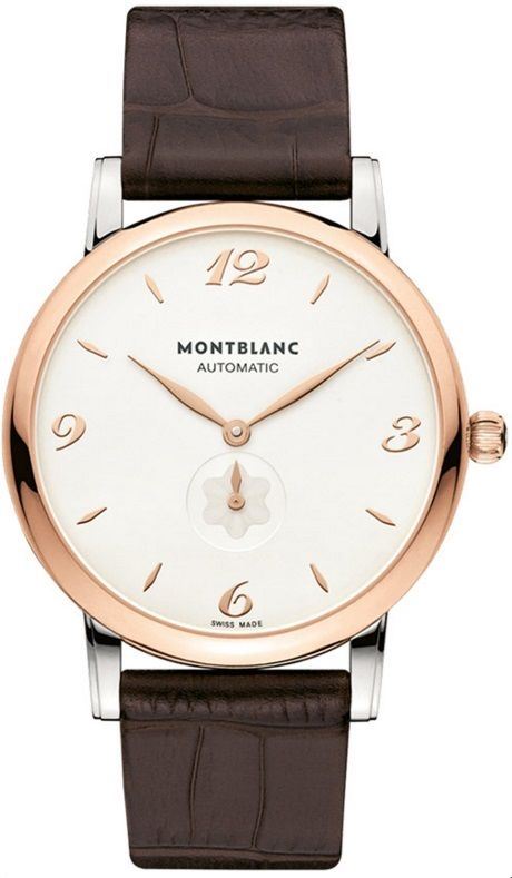 Model: 107309 - CASE = [Material:Stainless Steel and Rose Gold], [Case Diameter:39], [Case Thickness:8.9mm], [Bezel:Fixed], [Case Back:Skeleton], [Water Resistant:30 Meters - 100 Feet], [Crystal:Scratch Resistant Sapphire], DIAL = [Color:Silvery-white with Rose Gold Platd Numerals and Indexes], MOVEMENT = [Type:Automatic, 42 Hour Power Reserve], [Crown:Push In], BAND = [Clasp:Tang], [Type:Black Alligator Leather], (Usually ships in 1 to 2 business days.)