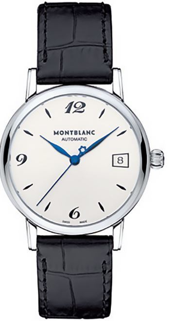 Model: 111590 - CASE = [Material:Stainless Steel], [Case Diameter:34], [Case Thickness:8.58mm], [Bezel:Fixed], [Case Back:Skeleton], [Water Resistant:30 Meters - 100 Feet], [Crystal:Scratch Resistant Sapphire], DIAL = [Color:Silver], MOVEMENT = [Type:Automatic], [Crown:Push In], BAND = [Clasp:Tang], [Type:Black Alligator Leather], (Usually ships in 1 to 2 weeks.)