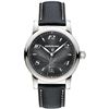 Model: 108763 - CASE = [Material:Stainless Steel], [Case Diameter:39], [Case Thickness:9.17mm], [Bezel:Fixed], [Case Back:Solid], [Water Resistant:30 Meters - 100 Feet], [Crystal:Scratch Resistant Sapphire], DIAL = [Color:Black Guilloche with Rhodium Platd Indexes and Numerals], MOVEMENT = [Type:Quartz], [Crown:Push In], BAND = [Clasp:Tang], [Type:Black Calfskin Leather], (Usually ships in 1 to 2 weeks.)