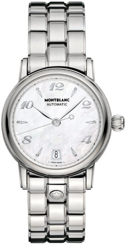 Model: 107117 - CASE = [Material:Stainless Steel], [Case Diameter:36], [Case Thickness:11.7mm], [Bezel:Fixed], [Case Back:Solid], [Water Resistant:30 Meters - 100 Feet], [Crystal:Scratch Resistant Sapphire], DIAL = [Color:White Mother of Pearl with Silver - Colored Numerals and 6 Diamonds], MOVEMENT = [Type:Automatic, 42 Hour Power Reserve], [Crown:Push In], BAND = [Clasp:Folding], [Type:Stainless Steel], (Usually ships in 1 to 2 weeks.)