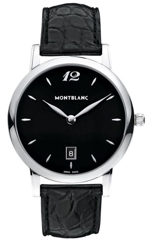 Model: 108769 - CASE = [Material:Stainless Steel], [Case Diameter:39], [Bezel:Fixed], [Case Back:Solid], [Water Resistant:30 Meters - 100 Feet], [Crystal:Scratch Resistant Sapphire], DIAL = [Color:Black], MOVEMENT = [Type:Quartz], [Crown:Push In], BAND = [Clasp:Tang], [Type:Black Leather], (Usually ships in 1 to 2 business days.)