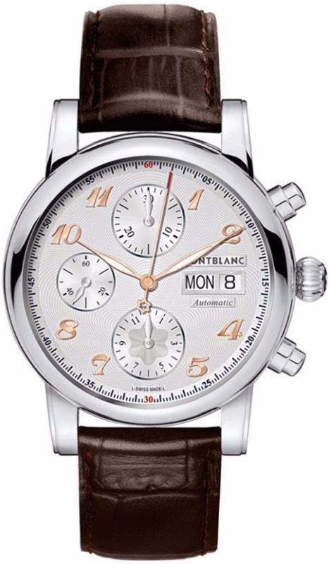 Model: 113847 - CASE = [Material:Stainless Steel], [Case Diameter:39], [Case Thickness:13.95mm], [Bezel:Fixed], [Case Back:Skeleton], [Water Resistant:30 Meters - 100 Feet], [Crystal:Scratch Resistant Sapphire],; DIAL = [Color:Silvery-white Guilloche with Rose Gold Platd Numerals],; MOVEMENT = [Type:Automatic Chronograph], [Crown:Push In],; BAND = [Clasp:Folding], [Type:Black Alligator Leather], (Usually ships in 1 to 2 weeks.)