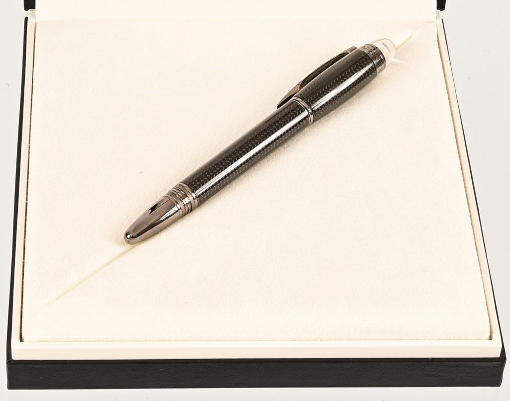Montblanc Starwalker Ultimate Carbon Fountain & Rollerball Pens. Excellent condition in original boxes.