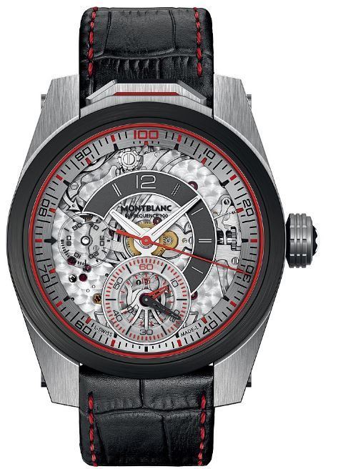 Model: 111285 - CASE = [Material:Titanium], [Case Diameter:45.6], [Case Thickness:15.48mm], [Bezel:Fixed], [Case Back:Skeleton], [Water Resistant:30 Meters - 100 Feet], [Crystal:Scratch Resistant Sapphire], DIAL = [Color:Skeleton], MOVEMENT = [Type:Manual Winding Chronograph], [Crown:Push In], BAND = [Clasp:Tang], [Type:Black Alligator Leather with Red Stiching], (Usually ships in 1 to 2 weeks.)
