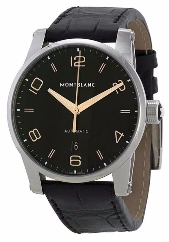 Model: 110337 - CASE = [Material:Stainless Steel], [Case Diameter:43], [Case Thickness:11.2mm], [Bezel:Fixed], [Case Back:Solid], [Water Resistant:30 Meters - 100 Feet], [Crystal:Scratch Resistant Sapphire],; DIAL = [Color:Black],; MOVEMENT = [Type:Automatic], [Crown:Push In],; BAND = [Clasp:Tang], [Type:Black Alligator Leather], (Usually ships in 1 to 2 weeks.)