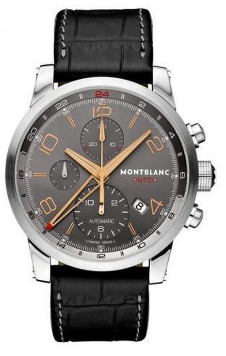 Model: 107063 - CASE = [Material:Stainless Steel], [Case Diameter:43], [Bezel:Fixed], [Case Back:Solid], [Water Resistant:30 Meters - 100 Feet], [Crystal:Scratch Resistant Sapphire], DIAL = [Color:Grey], MOVEMENT = [Type:Self Winding Automatic], [Crown:Push In], BAND = [Clasp:Tang], [Type:Black Alligator Leather], (Usually ships in 1 to 2 weeks.)