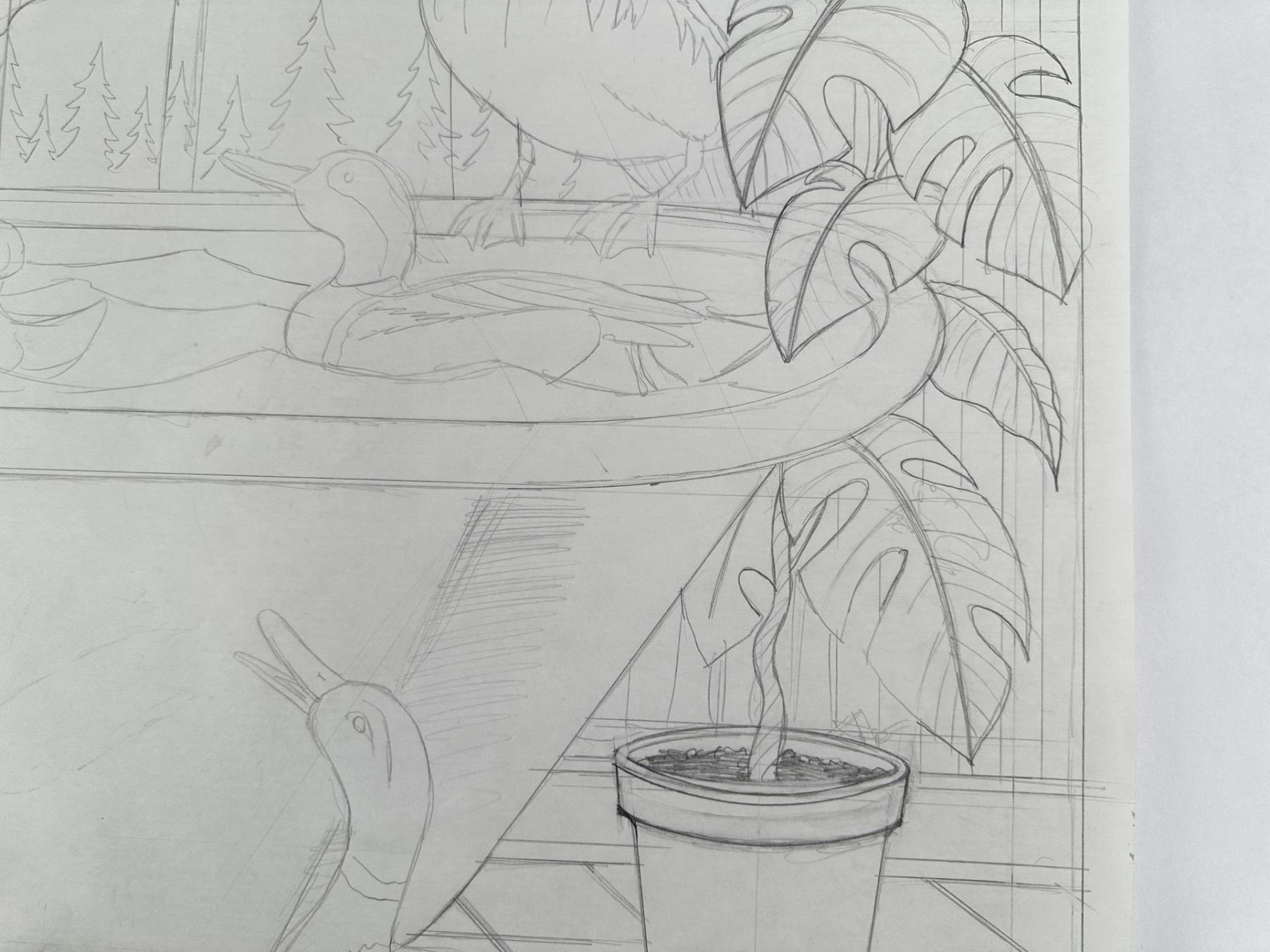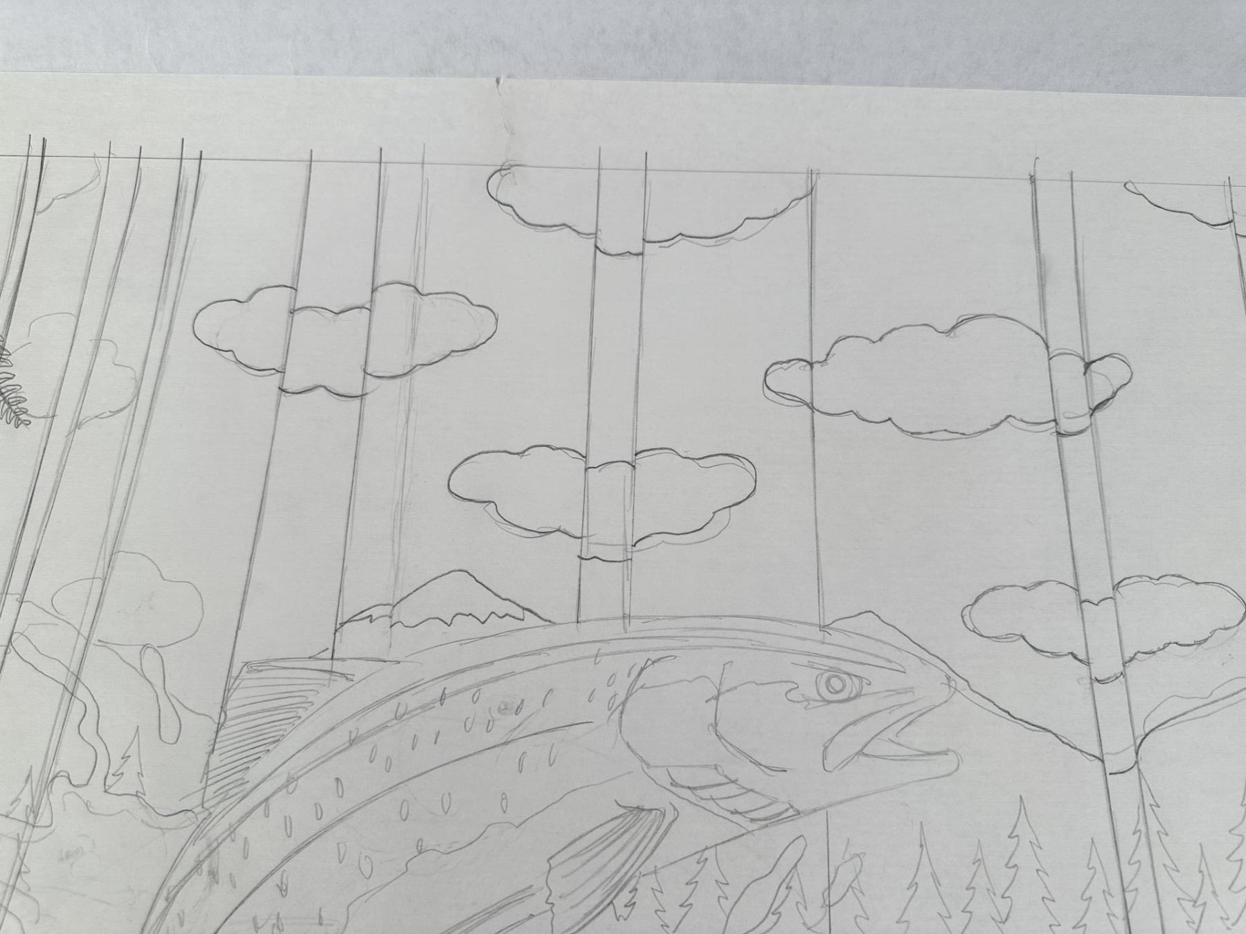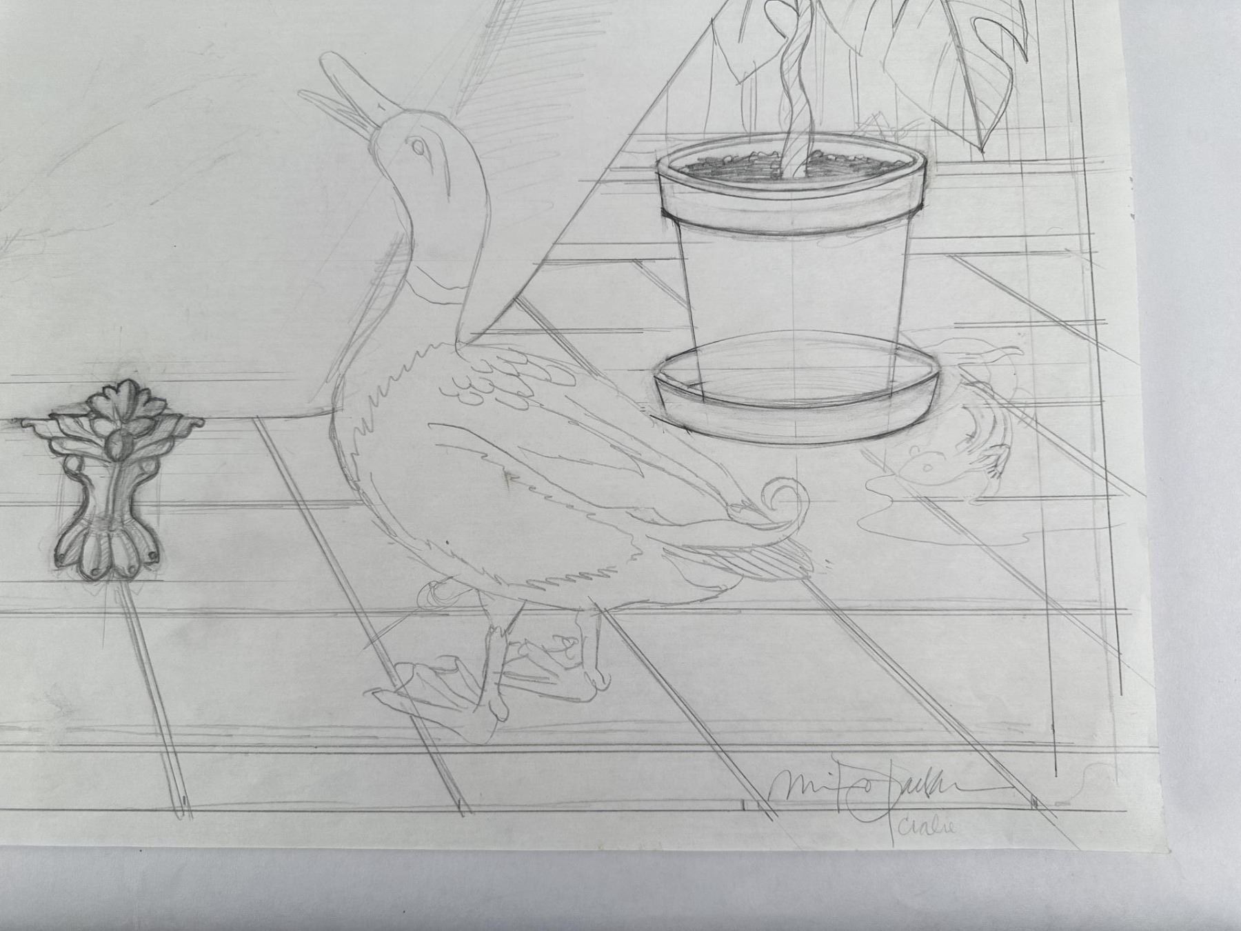 This is the Final Study produced before the Iconic Big Fish Small Pond Poster Was Printed. 28" by 38 1/2" Monte Dolack (Born 1950) is active/lives in Montana. Monte Dolack is known for Poster illustration, landscape and wildlife painting. A native of Great Falls, Monte Dolack grew up surrounded by the same sweeping vistas and big sky that inspired Charlie Russell. His love of Montana and passion for the West's diverse landscapes and wildlife are evident in the images he creates and the commissions he undertakes. After studying art at Montana State University and The University of Montana, Monte opened his first studio in 1974, beginning a career in fine art and graphics. His best known early works - wild animals wreaking havoc in human homes - comprise his Invaders Series, exploring the myths of the West and how we view our relationship with our environment. The irresistible appeal of these images helped build Monte's national reputation and continues to attract collectors. Monte has been the recipient of a number of prestigious awards in the course of his career, and his work is part of the collection of the Library of Congress, the American Association of Museums, the National Wildfire Foundation and numerous other museums and corporations. Recent exhibitions include The Montana Exhibition, Manawatu Art Museum, New Zealand; Artists of the American West, Bank of Ireland Arts Centre, Dublin, Ireland, and The Kumamoto Prefectural Art Museum, Kumamoto, Japan. Monte's work was chosen to be included in The North American Print Biennial, Boston, MA and New American Paintings, a Western States competition sponsored by the Open Studio Press as well as five major museums in China including the National Art Museum of Bejing, as part of the New West Exhibition. In 2011 he exhibited at the Palace of Nations at the United Nations, Geneva Switzerland. He was selected at the turn of the century by the Missoulian as one of the 100 most influential Montanans of the twentieth century and recently received the distinguished Fine Arts Alumni Award from the University of Montana along with his wife, Mary Beth Percival. A love of the natural world, combined with his exuberant curiosity and travel experiences, has shaped the content of Monte's imagery. Blending mythology, technology and elements from nature, his work is infused with a sense of humor and irony. Monte's keen interest in environmental issues has lead to commissions for the Nature Conservancy, Defenders of Wildlife and Trout Unlimited as well as over 200 posters and prints for various organizations. In addition to his acrylic, oil and watercolor painting, Monte continues to pursue his interest in traditional printmaking, having created numerous original lithographs. Since 1993, with his wife, Mary Beth Percival and staff, he operates a flourishing gallery in downtown Missoula. Monte and Mary Beth have traveled extensively in the US, Europe, Mexico, New Zealand and Japan, visiting important cultural sites and museums and making paintings from their travels.