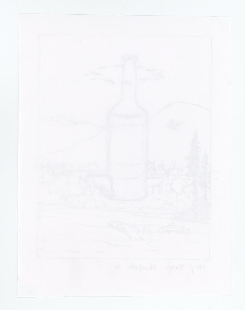 A concept sketch by the artist that was never used. Possibly for the Bayern Brewing 25th Anniversary. 12 1/8" by 6 3/8". Monte Dolack (Born 1950) is active/lives in Montana. Monte Dolack is known for Poster illustration, landscape and wildlife painting. A native of Great Falls, Monte Dolack grew up surrounded by the same sweeping vistas and big sky that inspired Charlie Russell. His love of Montana and passion for the West's diverse landscapes and wildlife are evident in the images he creates and the commissions he undertakes. After studying art at Montana State University and The University of Montana, Monte opened his first studio in 1974, beginning a career in fine art and graphics. His best known early works - wild animals wreaking havoc in human homes - comprise his Invaders Series, exploring the myths of the West and how we view our relationship with our environment. The irresistible appeal of these images helped build Monte's national reputation and continues to attract collectors. Monte has been the recipient of a number of prestigious awards in the course of his career, and his work is part of the collection of the Library of Congress, the American Association of Museums, the National Wildfire Foundation and numerous other museums and corporations. Recent exhibitions include The Montana Exhibition, Manawatu Art Museum, New Zealand; Artists of the American West, Bank of Ireland Arts Centre, Dublin, Ireland, and The Kumamoto Prefectural Art Museum, Kumamoto, Japan. Monte's work was chosen to be included in The North American Print Biennial, Boston, MA and New American Paintings, a Western States competition sponsored by the Open Studio Press as well as five major museums in China including the National Art Museum of Bejing, as part of the New West Exhibition. In 2011 he exhibited at the Palace of Nations at the United Nations, Geneva Switzerland. He was selected at the turn of the century by the Missoulian as one of the 100 most influential Montanans of the twentieth century and recently received the distinguished Fine Arts Alumni Award from the University of Montana along with his wife, Mary Beth Percival. A love of the natural world, combined with his exuberant curiosity and travel experiences, has shaped the content of Monte's imagery. Blending mythology, technology and elements from nature, his work is infused with a sense of humor and irony. Monte's keen interest in environmental issues has lead to commissions for the Nature Conservancy, Defenders of Wildlife and Trout Unlimited as well as over 200 posters and prints for various organizations. In addition to his acrylic, oil and watercolor painting, Monte continues to pursue his interest in traditional printmaking, having created numerous original lithographs. Since 1993, with his wife, Mary Beth Percival and staff, he operates a flourishing gallery in downtown Missoula. Monte and Mary Beth have traveled extensively in the US, Europe, Mexico, New Zealand and Japan, visiting important cultural sites and museums and making paintings from their travels.