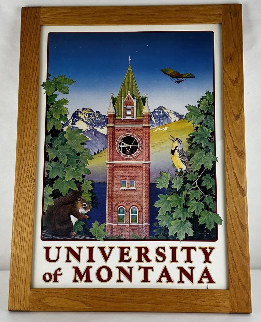 24" by 32 1/2" framed. Monte Dolack (Born 1950) is active/lives in Montana. Monte Dolack is known for Poster illustration, landscape and wildlife painting. A native of Great Falls, Monte Dolack grew up surrounded by the same sweeping vistas and big sky that inspired Charlie Russell. His love of Montana and passion for the West's diverse landscapes and wildlife are evident in the images he creates and the commissions he undertakes. After studying art at Montana State University and The University of Montana, Monte opened his first studio in 1974, beginning a career in fine art and graphics. His best known early works - wild animals wreaking havoc in human homes - comprise his Invaders Series, exploring the myths of the West and how we view our relationship with our environment. The irresistible appeal of these images helped build Monte's national reputation and continues to attract collectors. Monte has been the recipient of a number of prestigious awards in the course of his career, and his work is part of the collection of the Library of Congress, the American Association of Museums, the National Wildfire Foundation and numerous other museums and corporations. Recent exhibitions include The Montana Exhibition, Manawatu Art Museum, New Zealand; Artists of the American West, Bank of Ireland Arts Centre, Dublin, Ireland, and The Kumamoto Prefectural Art Museum, Kumamoto, Japan. Monte's work was chosen to be included in The North American Print Biennial, Boston, MA and New American Paintings, a Western States competition sponsored by the Open Studio Press as well as five major museums in China including the National Art Museum of Bejing, as part of the New West Exhibition. In 2011 he exhibited at the Palace of Nations at the United Nations, Geneva Switzerland. He was selected at the turn of the century by the Missoulian as one of the 100 most influential Montanans of the twentieth century and recently received the distinguished Fine Arts Alumni Award from the University of Montana along with his wife, Mary Beth Percival. A love of the natural world, combined with his exuberant curiosity and travel experiences, has shaped the content of Monte's imagery. Blending mythology, technology and elements from nature, his work is infused with a sense of humor and irony. Monte's keen interest in environmental issues has lead to commissions for the Nature Conservancy, Defenders of Wildlife and Trout Unlimited as well as over 200 posters and prints for various organizations. In addition to his acrylic, oil and watercolor painting, Monte continues to pursue his interest in traditional printmaking, having created numerous original lithographs. Since 1993, with his wife, Mary Beth Percival and staff, he operates a flourishing gallery in downtown Missoula. Monte and Mary Beth have traveled extensively in the US, Europe, Mexico, New Zealand and Japan, visiting important cultural sites and museums and making paintings from their travels.
