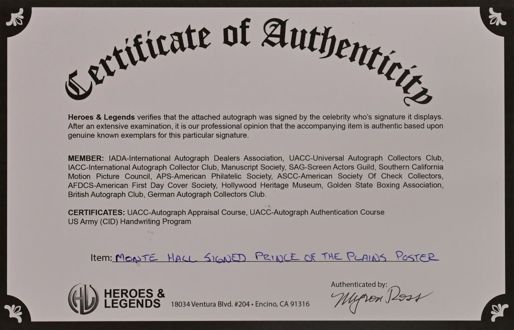 Monte Hall signed Prince of the Plains original poster. 27x41 inches. HL11303